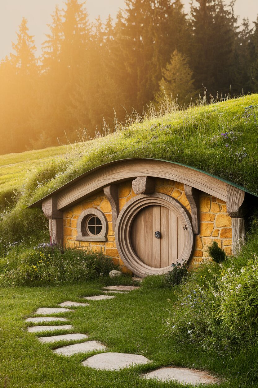 Step into a fantasy world with the Hobbit House, inspired by Tolkien’s mystical tales. With its round doors and grassy roof, it’s an enchanting retreat for fans of the whimsical and the wonderful.