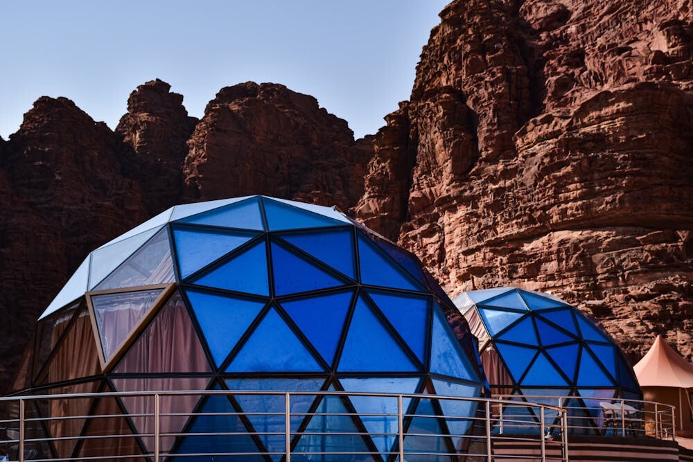 Experience the beauty of the desert with the unique Desert Dome. Its innovative design keeps you cool during the day and warm at night.