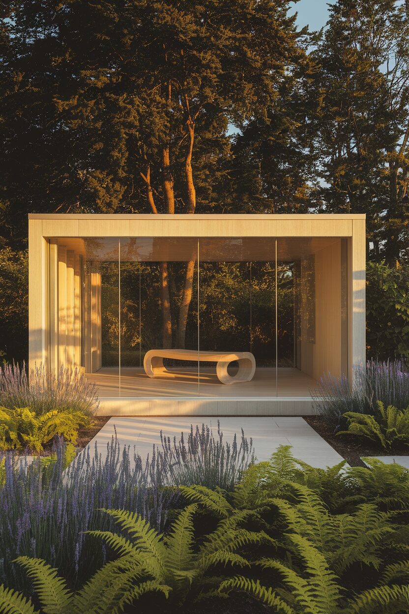 Embrace the future with a pavilion that boasts geometric shapes and cutting-edge design. It’s a bold statement that stands out in any garden.