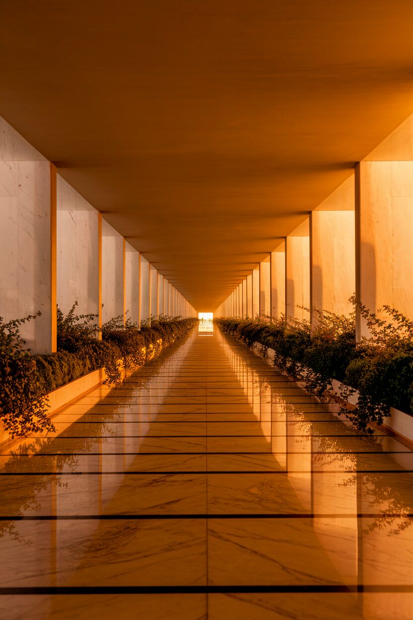 Imagine a long, wide corridor that feels like an art gallery. With evenly spaced artwork and gentle lighting, each step is a new experience.