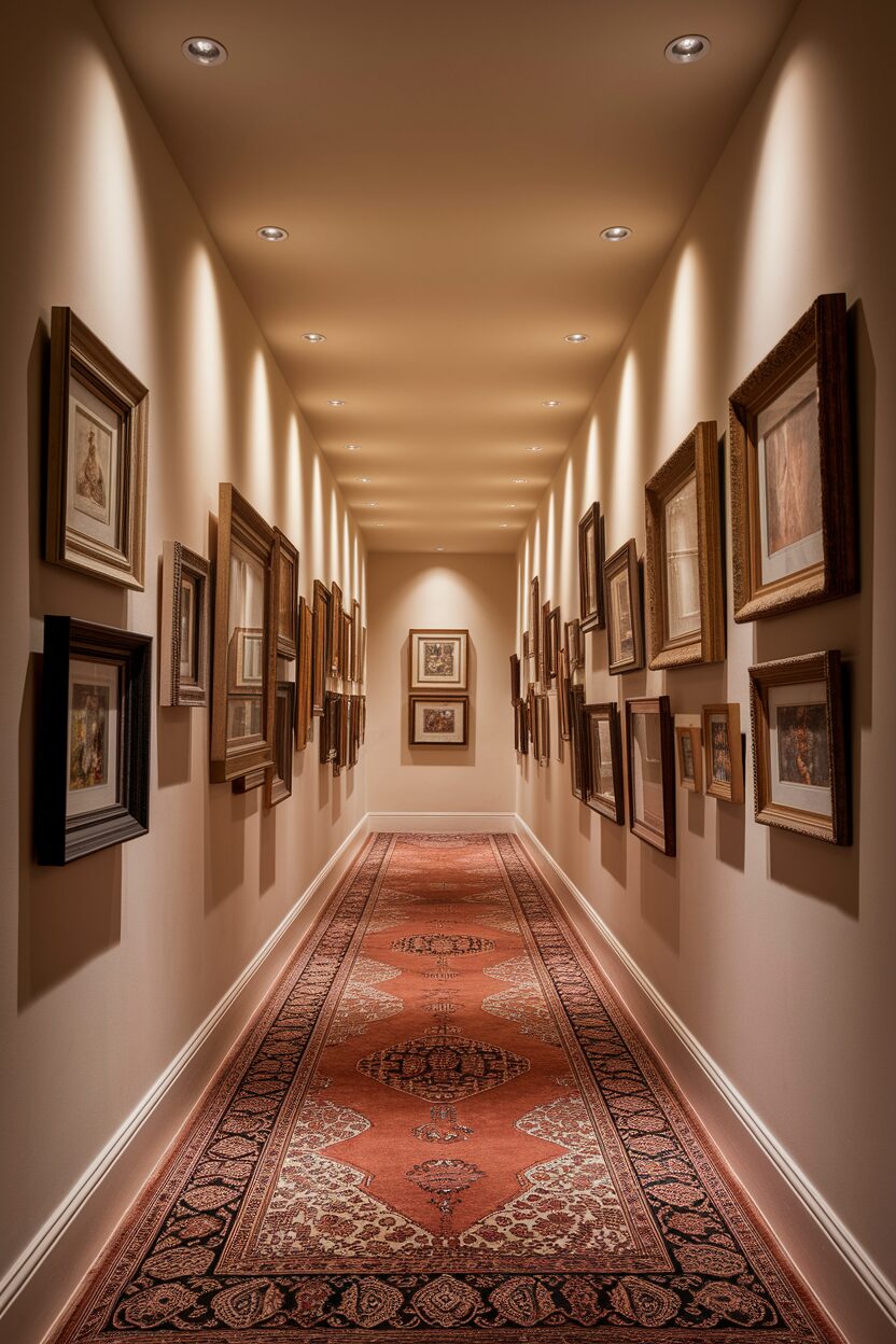 Hallways don’t have to be plain. Turn yours into a personal museum with a linear display of family photos or artwork.