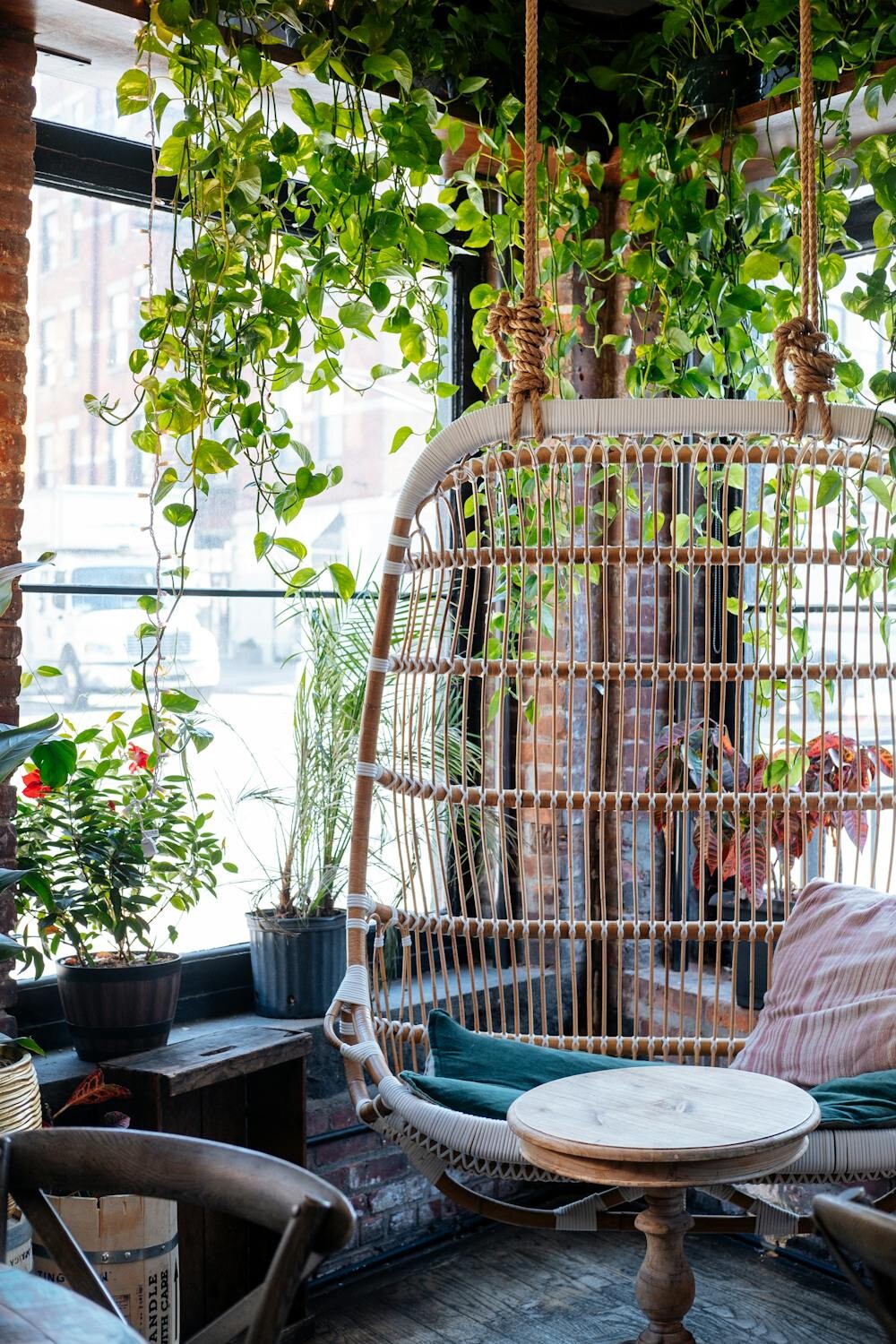 Fill the space with a variety of indoor plants and natural fibers. It’s relatively inexpensive, as plants are the main decor. Personalize it with unique planters and plant stands.
