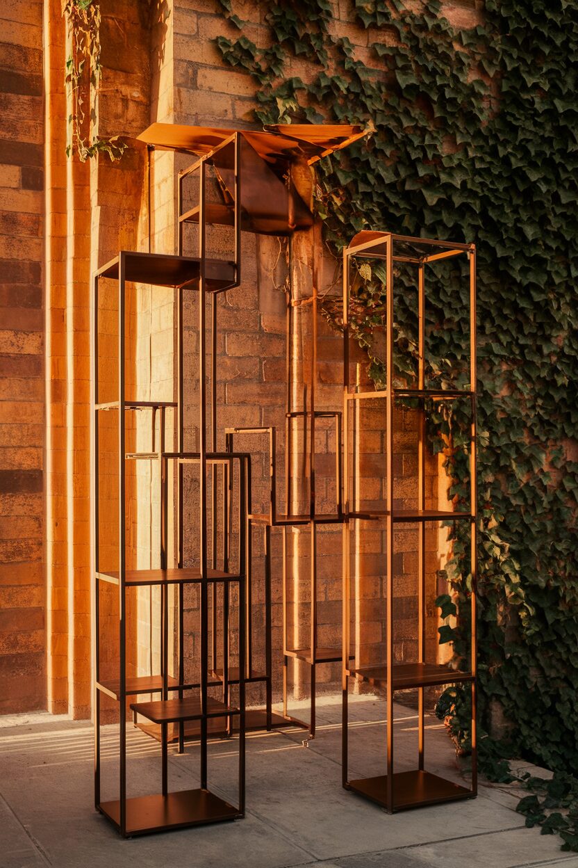 Imagine shelves that aren’t just for storage but also a piece of art. Metal frameworks allow for intricate geometric designs.