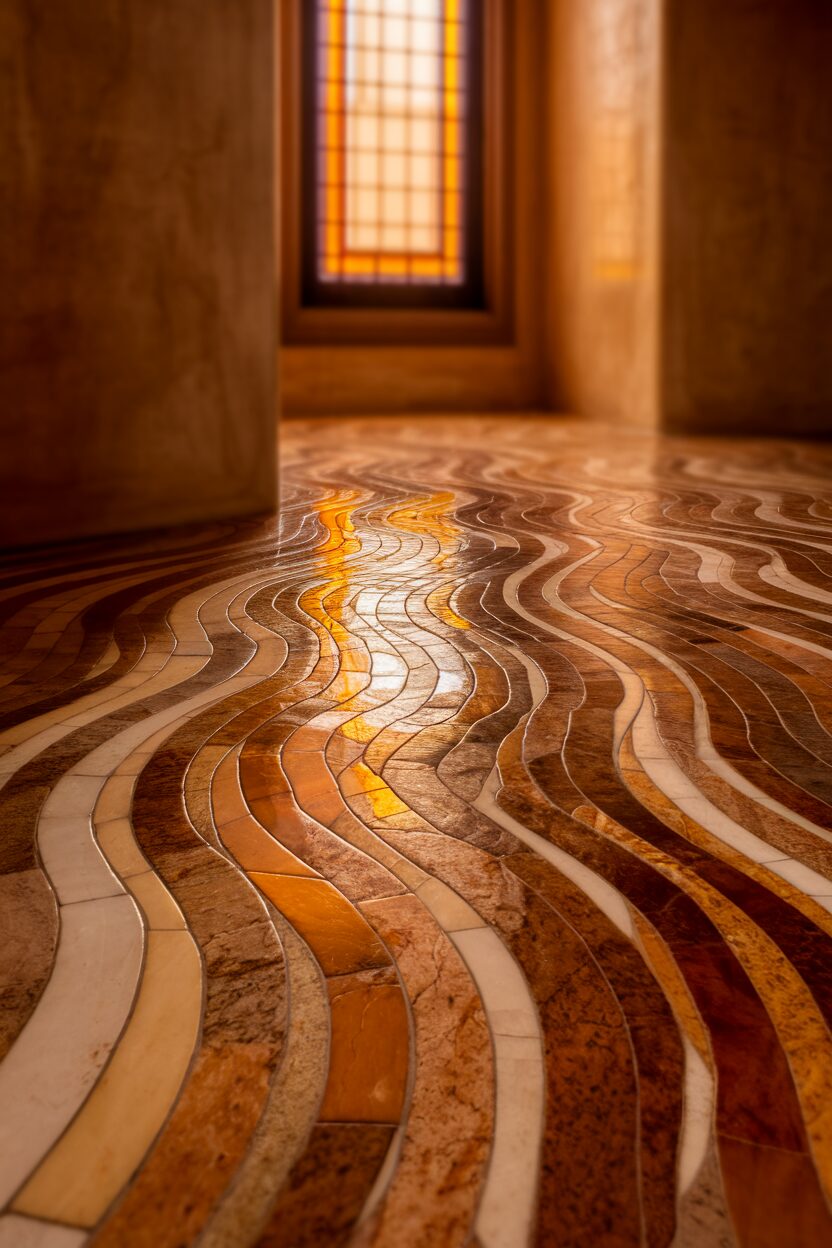 Walking into a bathroom with a polished stone floor feels like entering a spa. The cool touch of stone underfoot is soothing and luxurious. It’s perfect for creating a relaxing atmosphere.