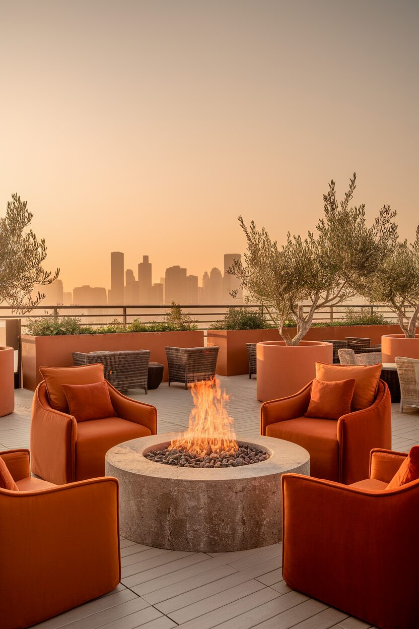 Bring the charm of the countryside to your rooftop with rustic elements like wooden furniture, burlap, and vintage finds. It’s like having a little farmhouse in the city!