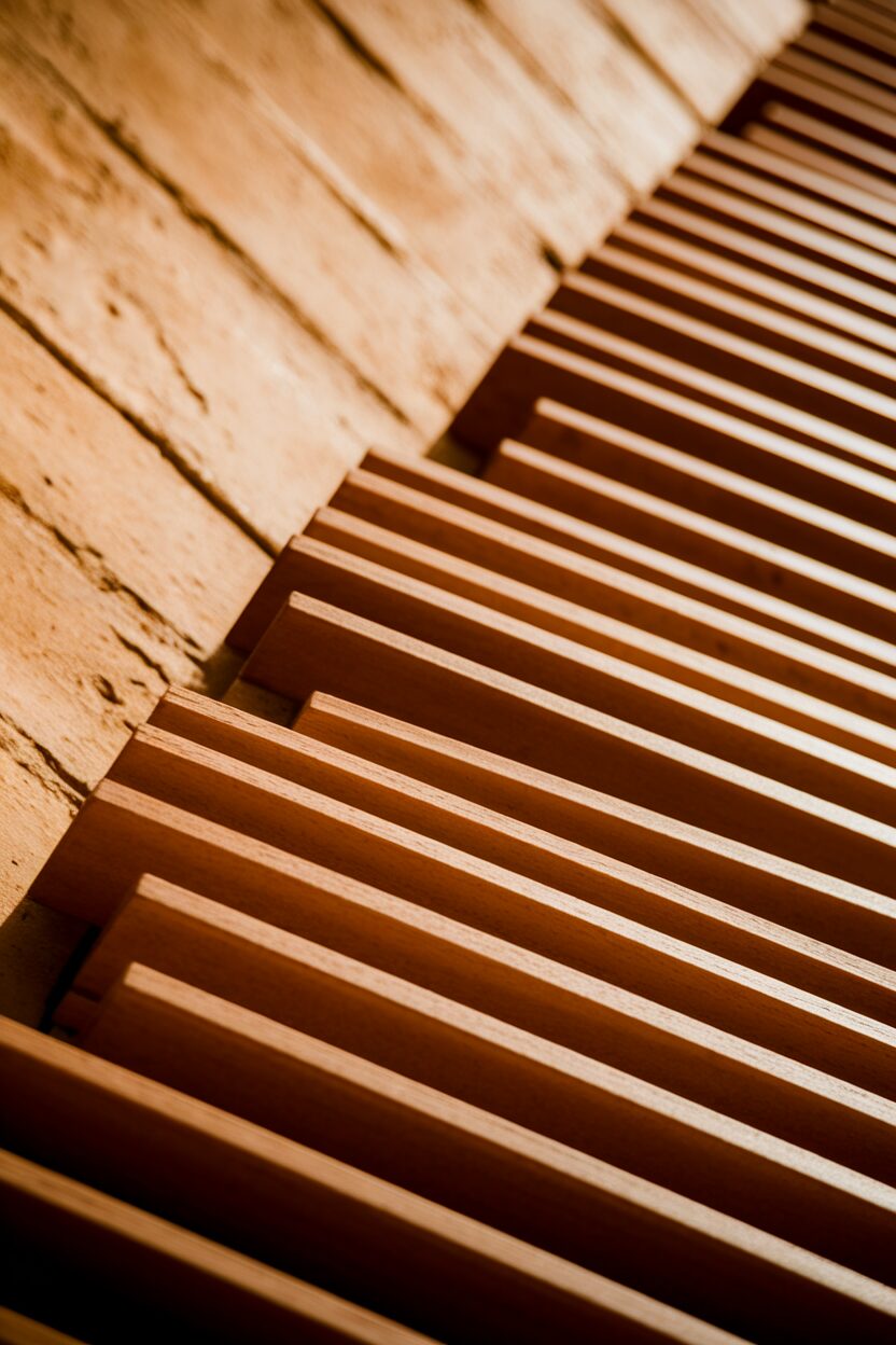 Wooden slats can change the mood of a room entirely. Arranged vertically or horizontally, they add texture and warmth. You get a sense of natural simplicity.