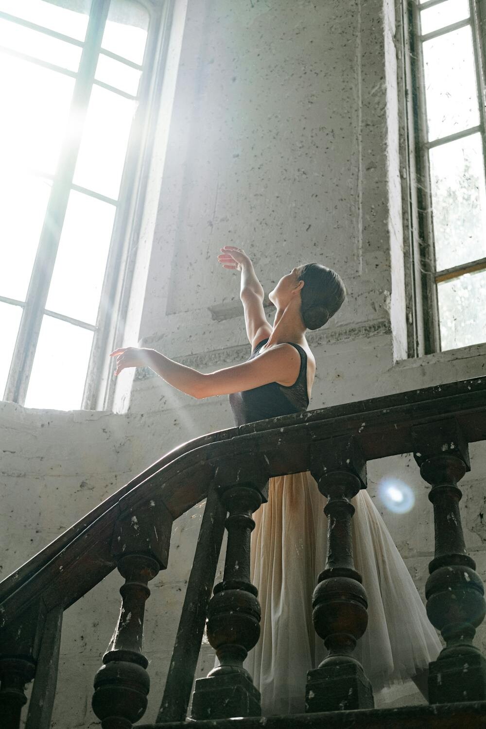 Bright windows with strategic lighting create interesting shadows. It’s like a dance of light and dark.