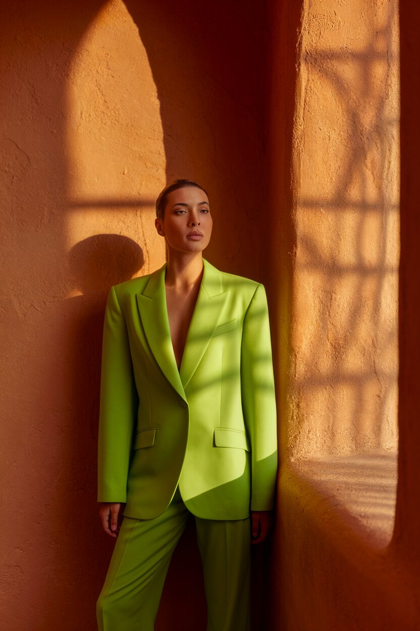 Neon green is not just a color; it’s a statement. It’s perfect for standing out in a crowd or bringing some cheer to a gloomy day. A blazer in this shade is versatile, suitable for both casual outings and more formal occasions.