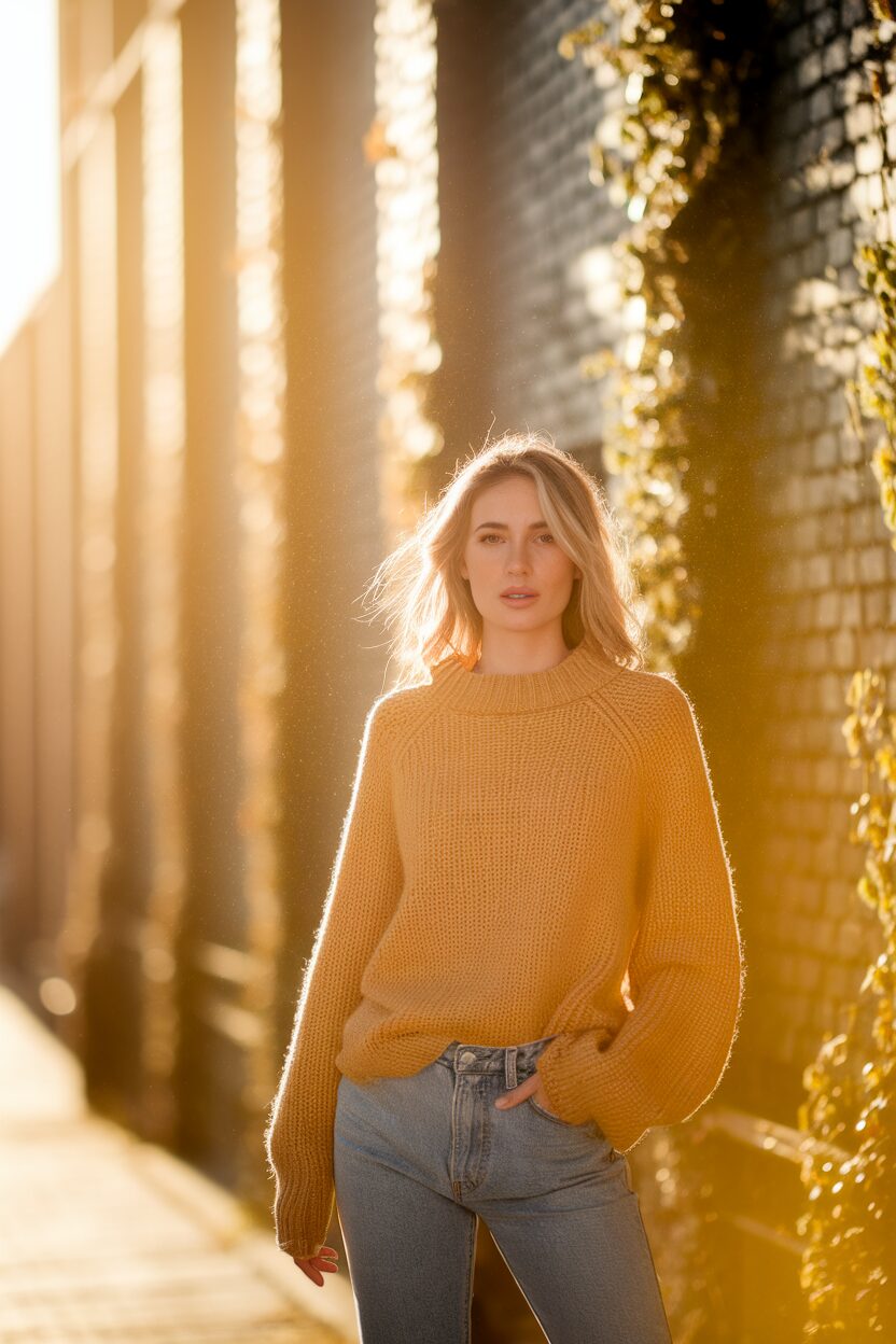 Imagine the warmth of a knit sweater on a crisp morning paired with your favorite jeans. This combo is as classic as it gets, offering both comfort and style. The knit sweater adds texture and warmth, making it perfect for those cooler days.