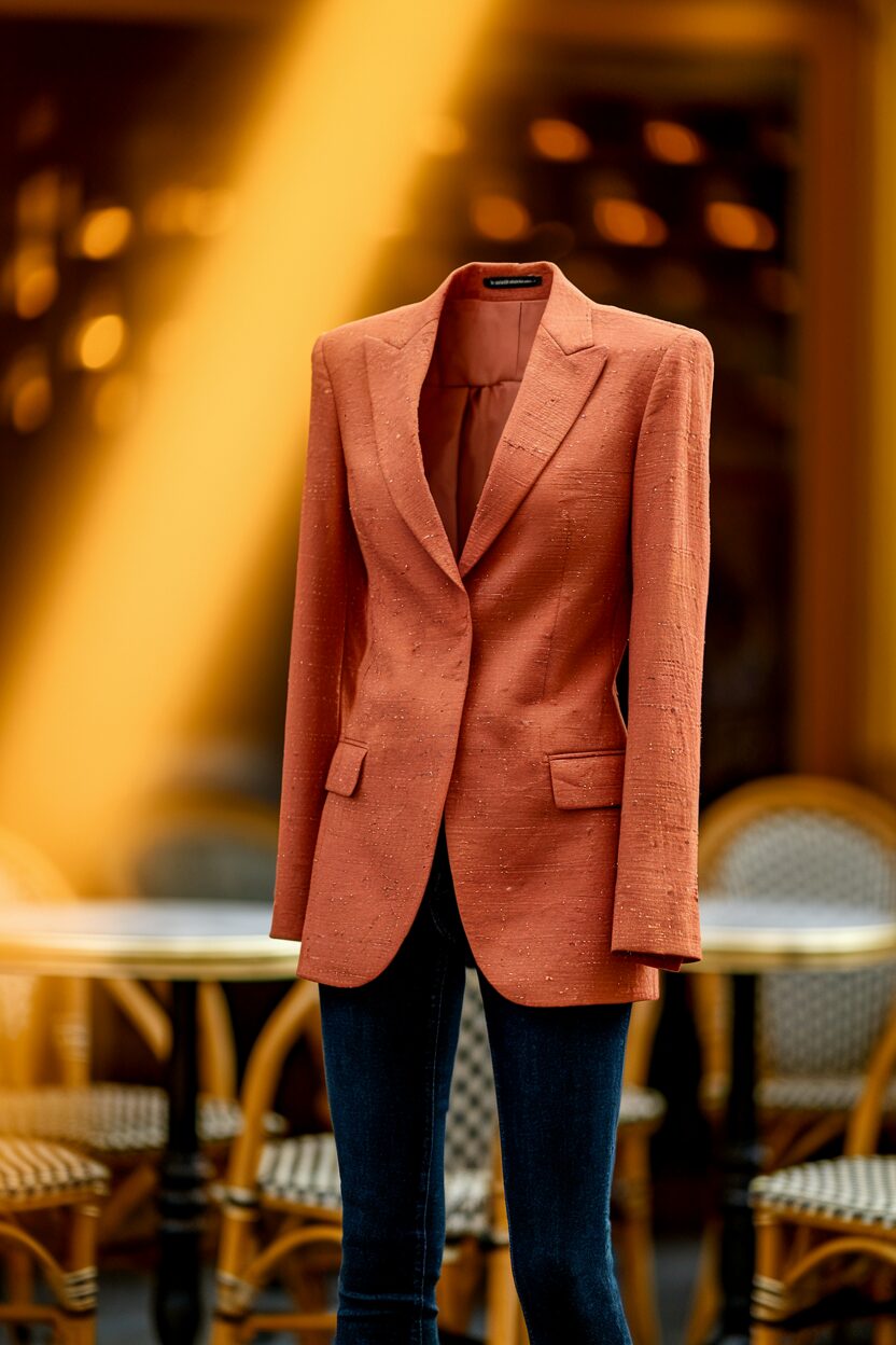 This style is perfect for travel, casual outings, or just enjoying a relaxed day. It’s a comfortable yet stylish way to wear your blazer in a new way.