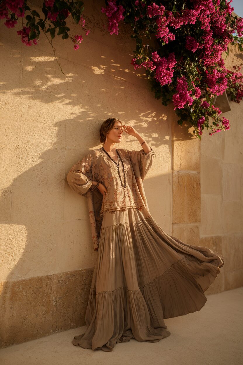 Unique accessories like wide-brim hats or feather earrings add an extra layer of cool. Plus, it’s incredibly comfortable, making it ideal for a day out. Experiment with earthy tones and vibrant prints to make it your own.