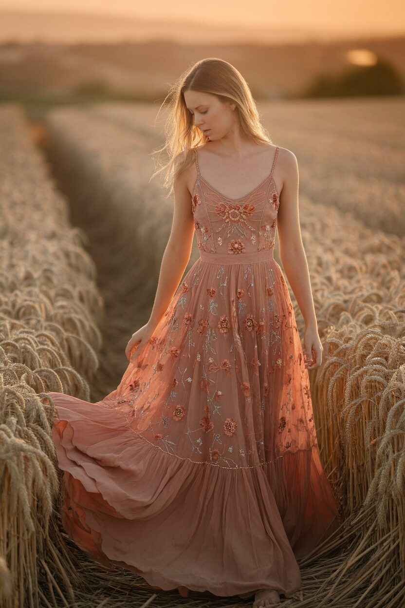 A bohemian maxi dress is perfect for a relaxed, artsy vibe. With its flowing fabric and vibrant patterns, it feels like a gentle breeze on a sunny day. Pair it with sandals and a floppy hat for a complete look.