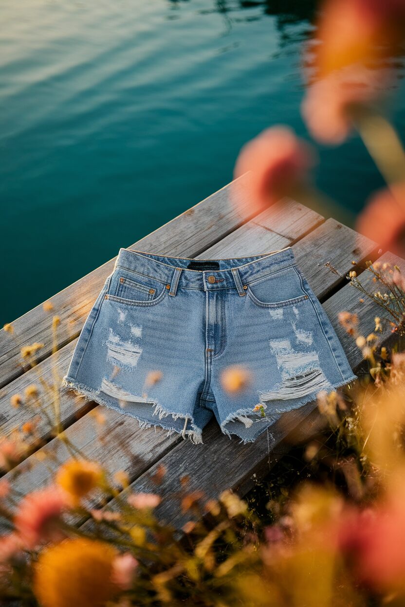 For those sunny days, distressed denim shorts offer a laid-back, carefree vibe. The frayed edges and ripped details add a touch of edginess to your outfit. They’re perfect for a beach day or a casual barbecue.
