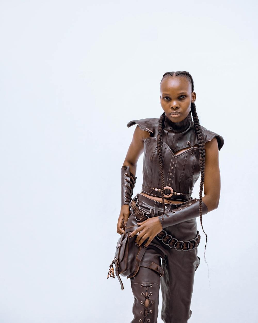 Combine sleek, modern elements with a warrior-like edge. Metallic fabrics, sharp silhouettes, and bold accessories create a striking look. It’s about blending technology with fashion.