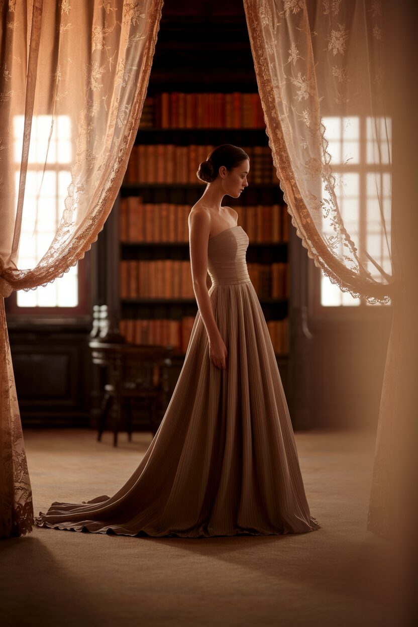 An empire waist dress gathers just below the bust, creating a long, flowing line. It’s perfect for creating an elongated silhouette. This style is great for formal events or a romantic evening.