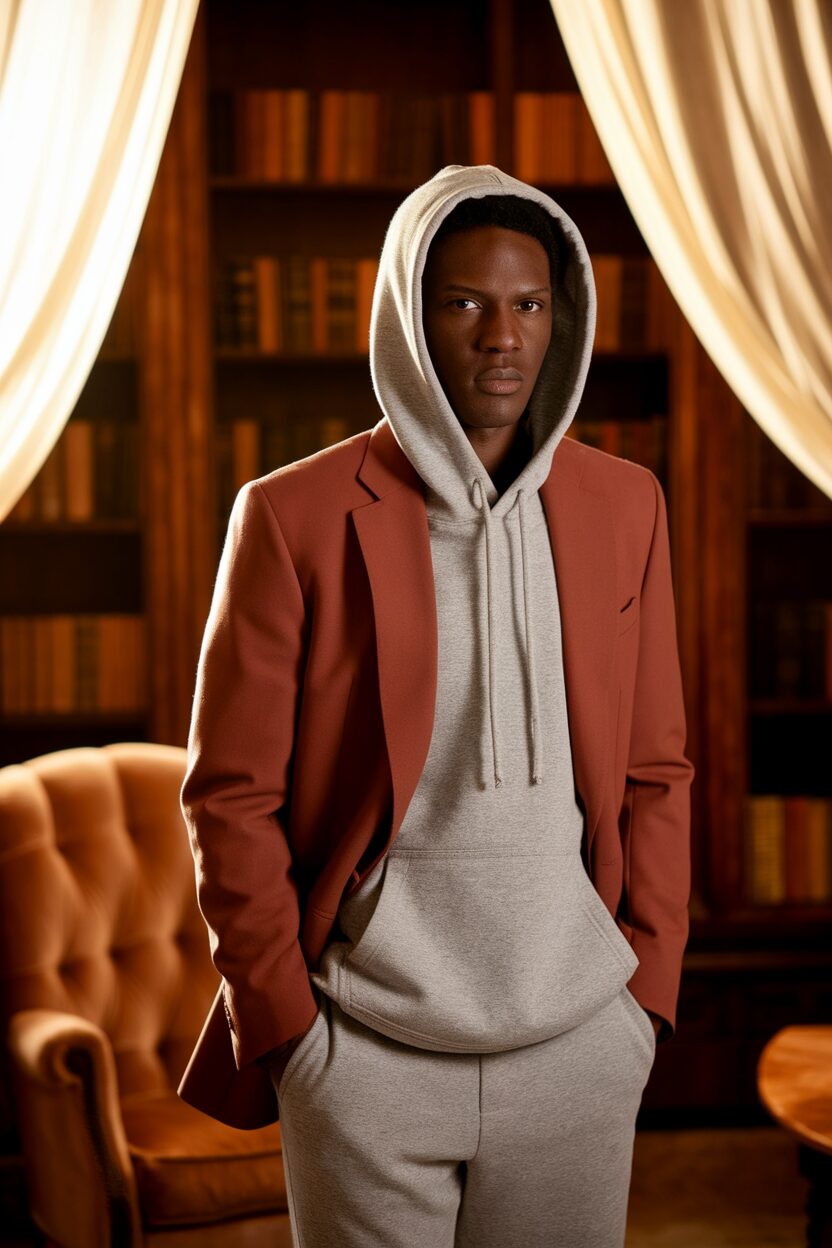 Who knew a blazer and a hoodie could be best friends? This fun combination brings together the best of both worlds: classy and casual. It’s like having a formal meeting with comfort.