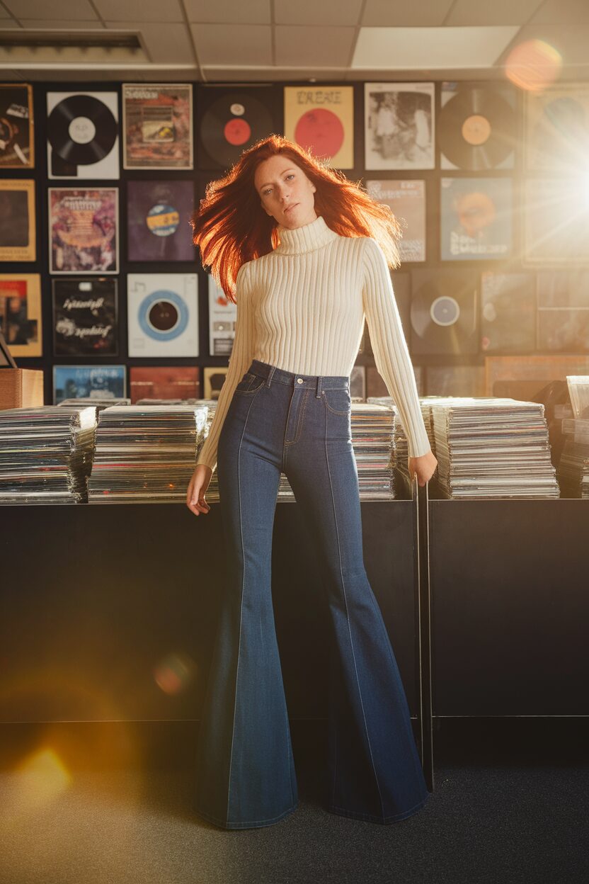 Flared jeans are like a time machine back to the groovy 70s. They make your legs look long and fabulous.