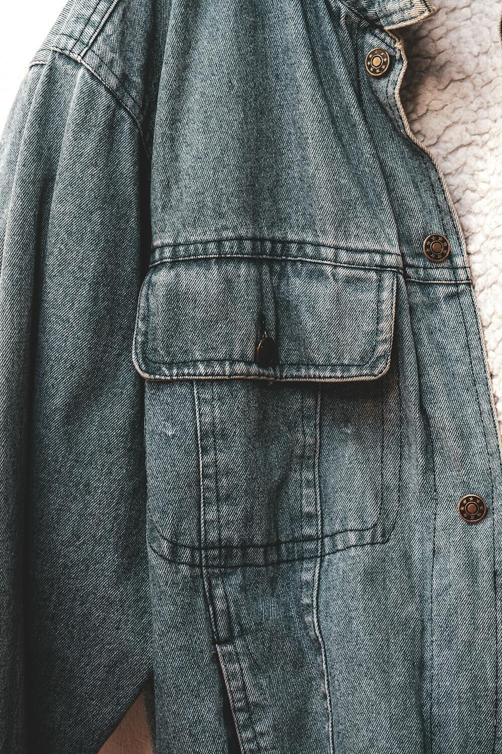 Combine the casual cool of denim with the cozy warmth of sherpa in this trendy jacket. Perfect for those in-between seasons, it’s a versatile piece that adds a touch of laid-back style to any look.
