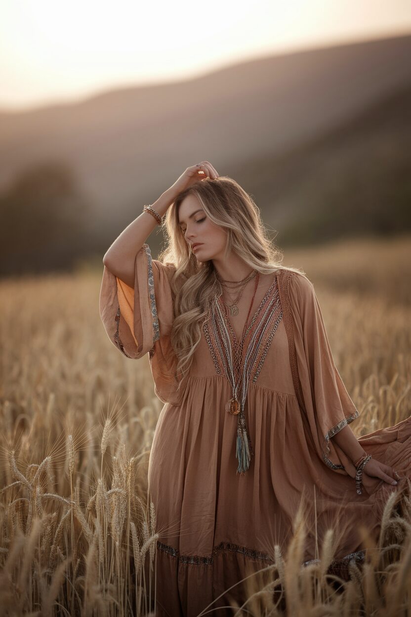 Embrace the free spirit of bohemian vibes with flowy dresses and earthy tones. Layered necklaces and floppy hats are your best friends here, bringing out the wanderer in you.