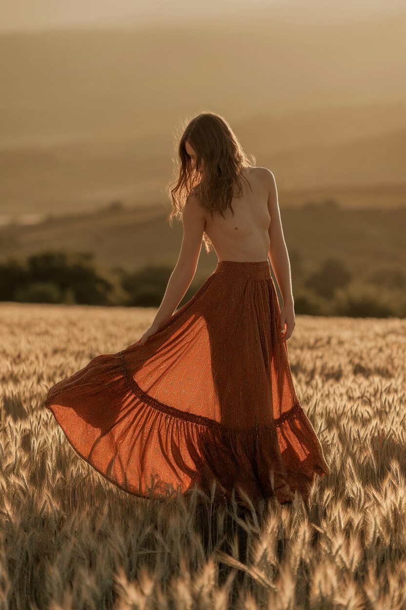 Feel the freedom of the open road in a bohemian maxi skirt. The flowy fabric dances as you walk, giving you an air of mystique.