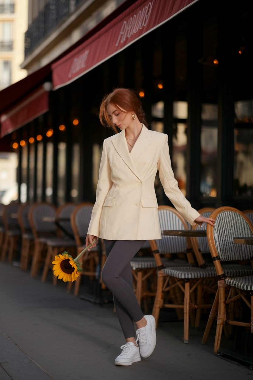 For those who love a bit of edge, sporty chic is the way to go. Combine a sleek bomber jacket with your favorite leggings and a pair of clean white sneakers. It’s an effortless look that’s great for running errands or meeting friends for brunch.