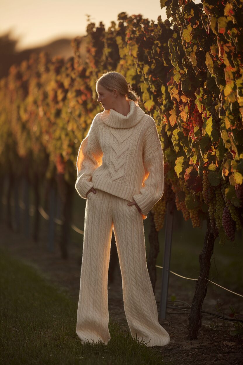 Imagine lounging in the softest knit set you can find. This outfit is all about comfort with a touch of elegance. A matching sweater and pants in a neutral color like beige or cream will keep you warm and stylish.