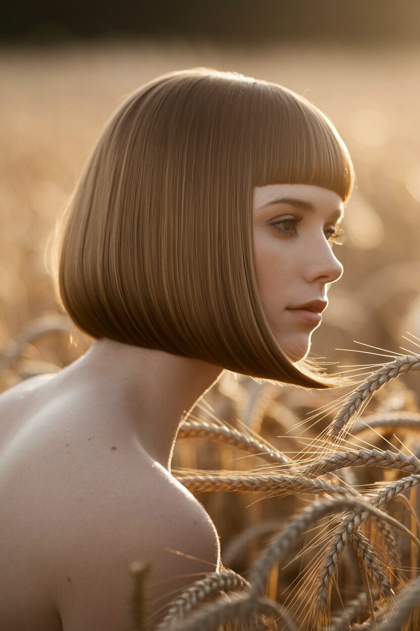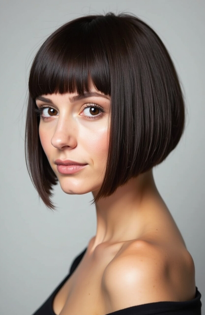 The Asymmetrical Blunt Cut brings a contemporary edge to the classic look. One side is longer than the other, creating an intriguing silhouette.