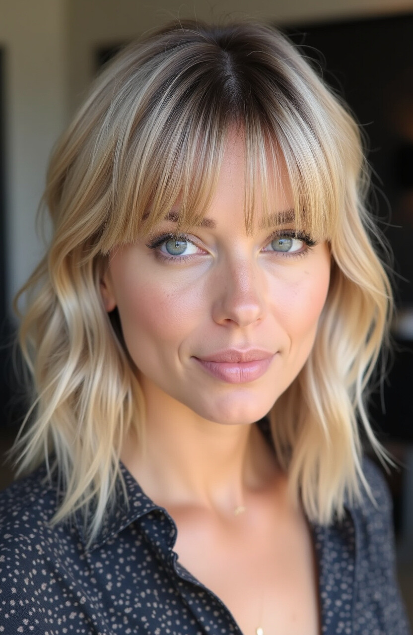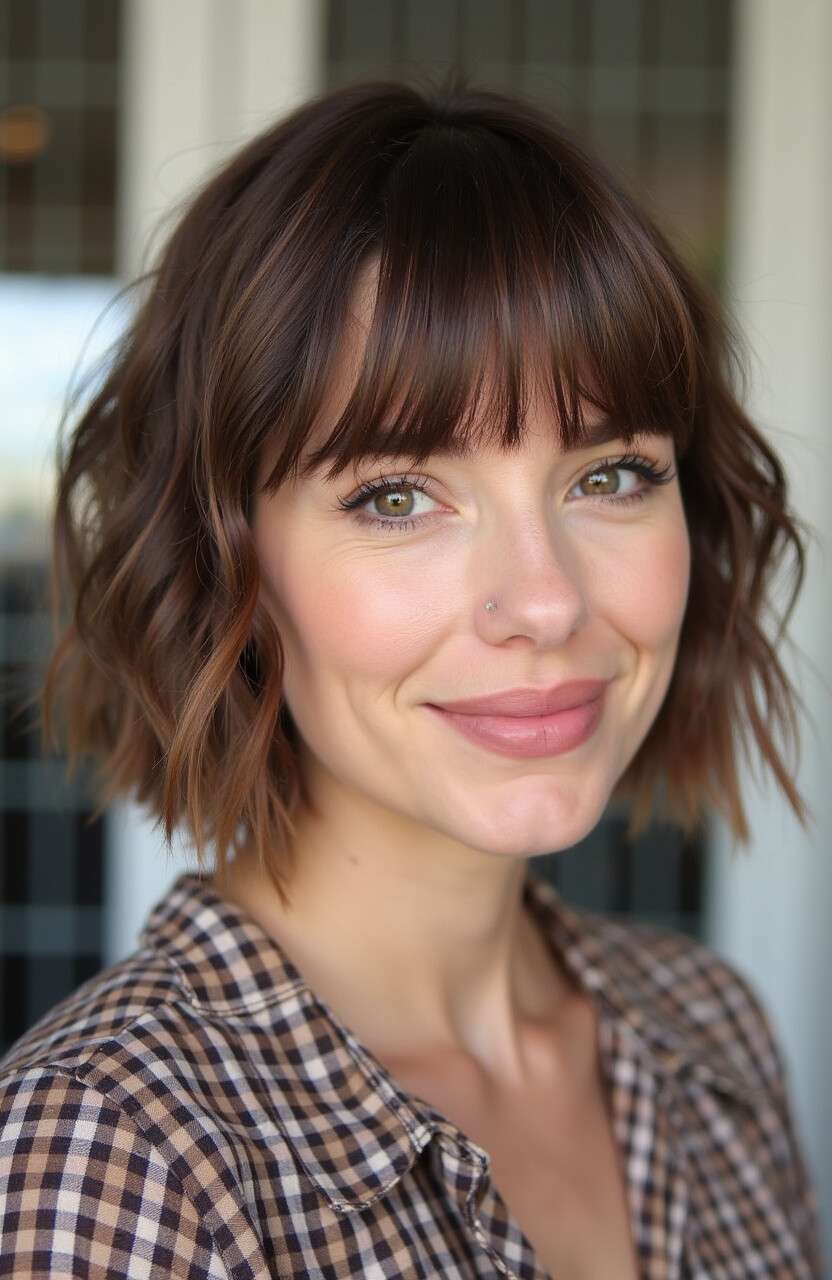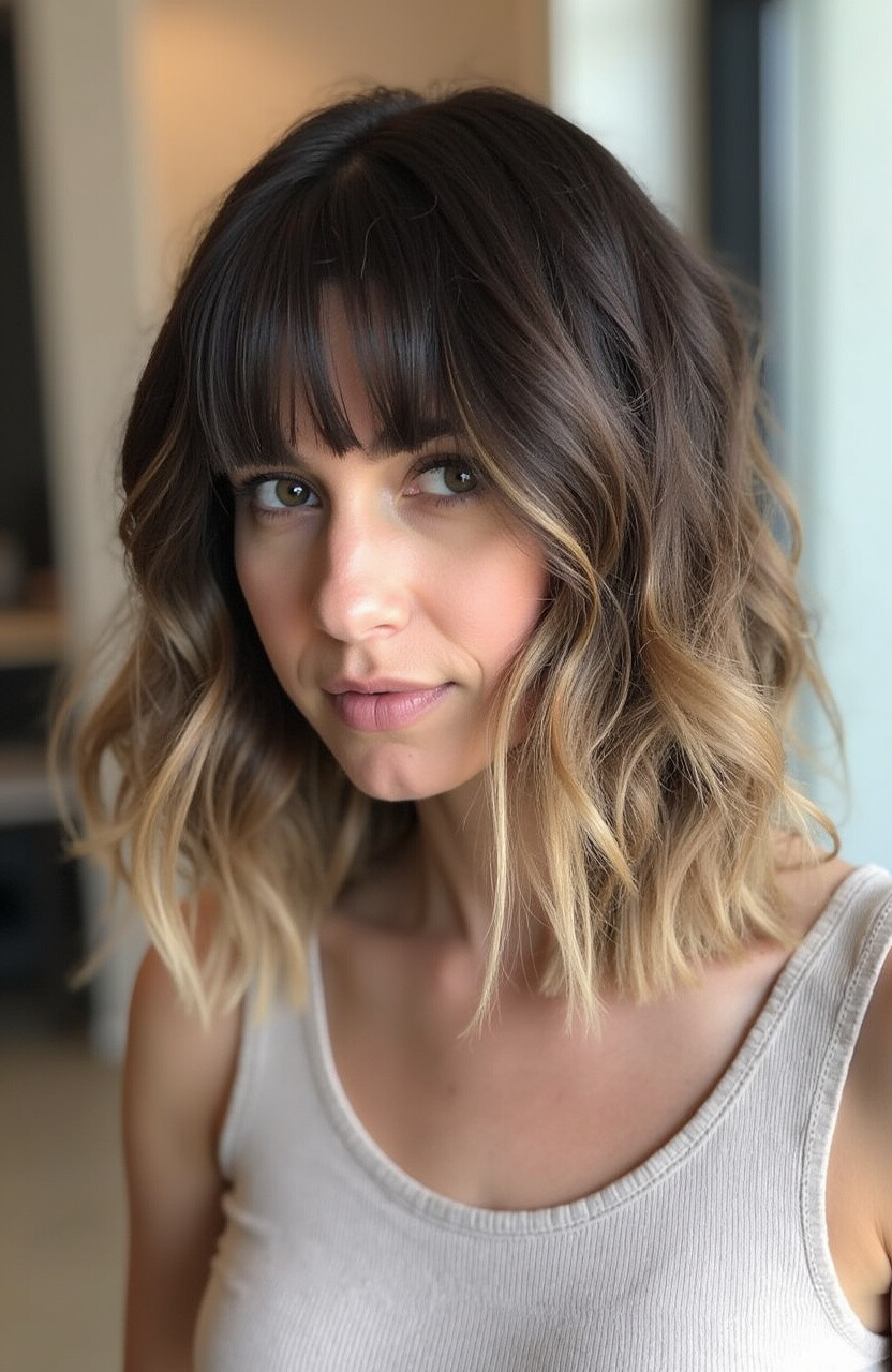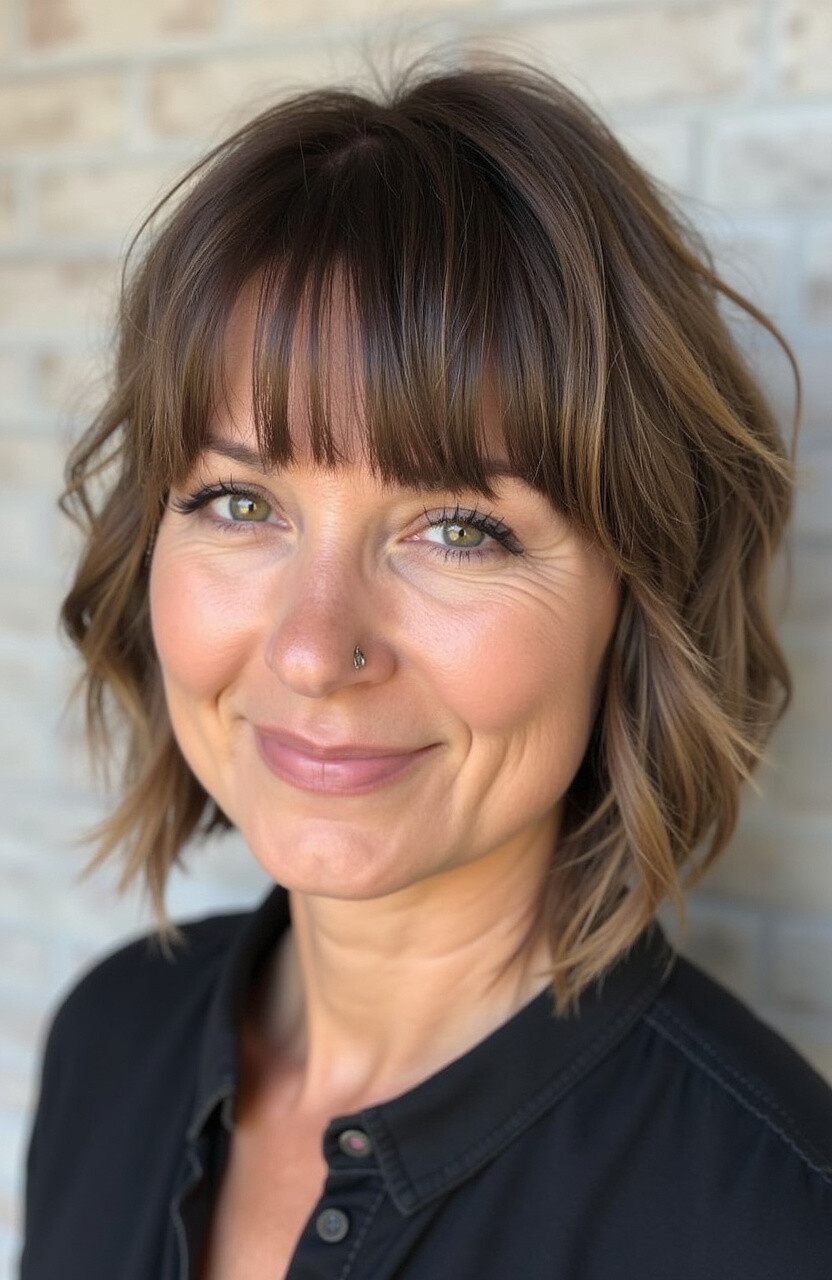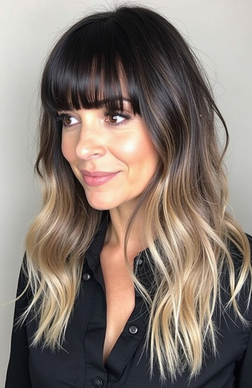 Curtain bangs, which split in the middle and frame the face, pair beautifully with straight or wavy hair. They’re perfect for softening the overall look.