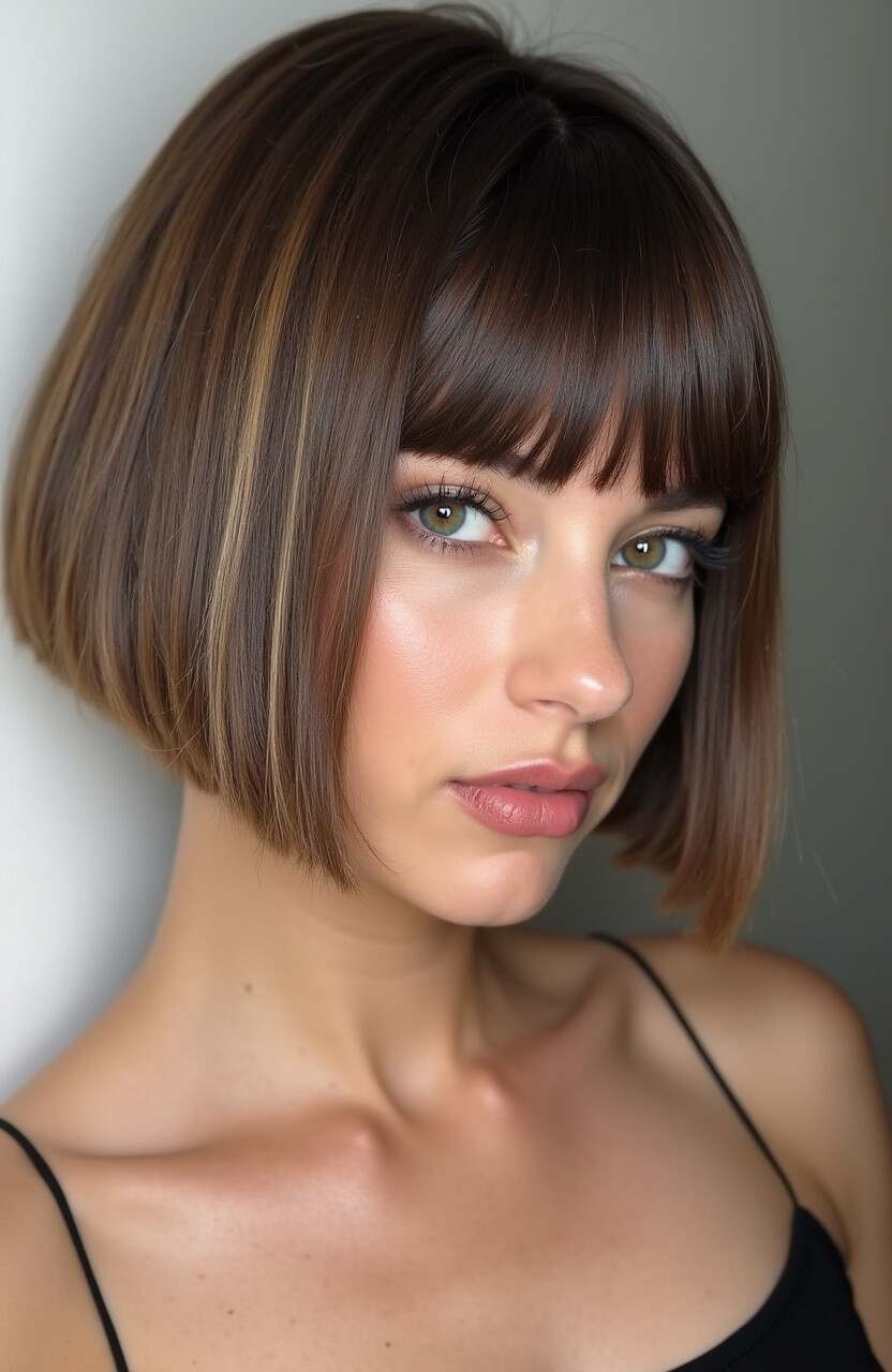 Highlights can be subtle or bold, depending on your preference. They enhance the blunt cut’s sharpness while adding a touch of glamour.