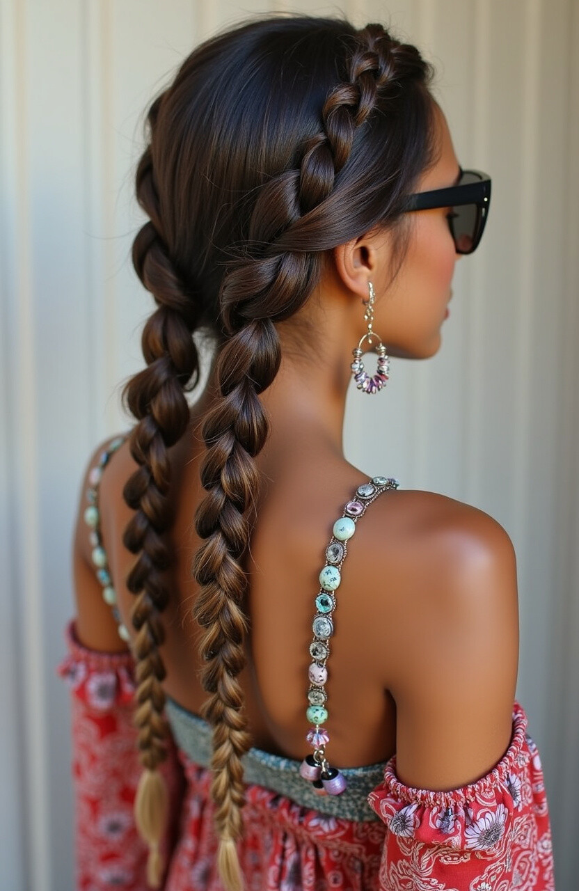 Double Dutch braids are a fun and sporty take on the classic braid, perfect for a bohemian look with a twist. They’re ideal for active days when you want your hair to stay put.