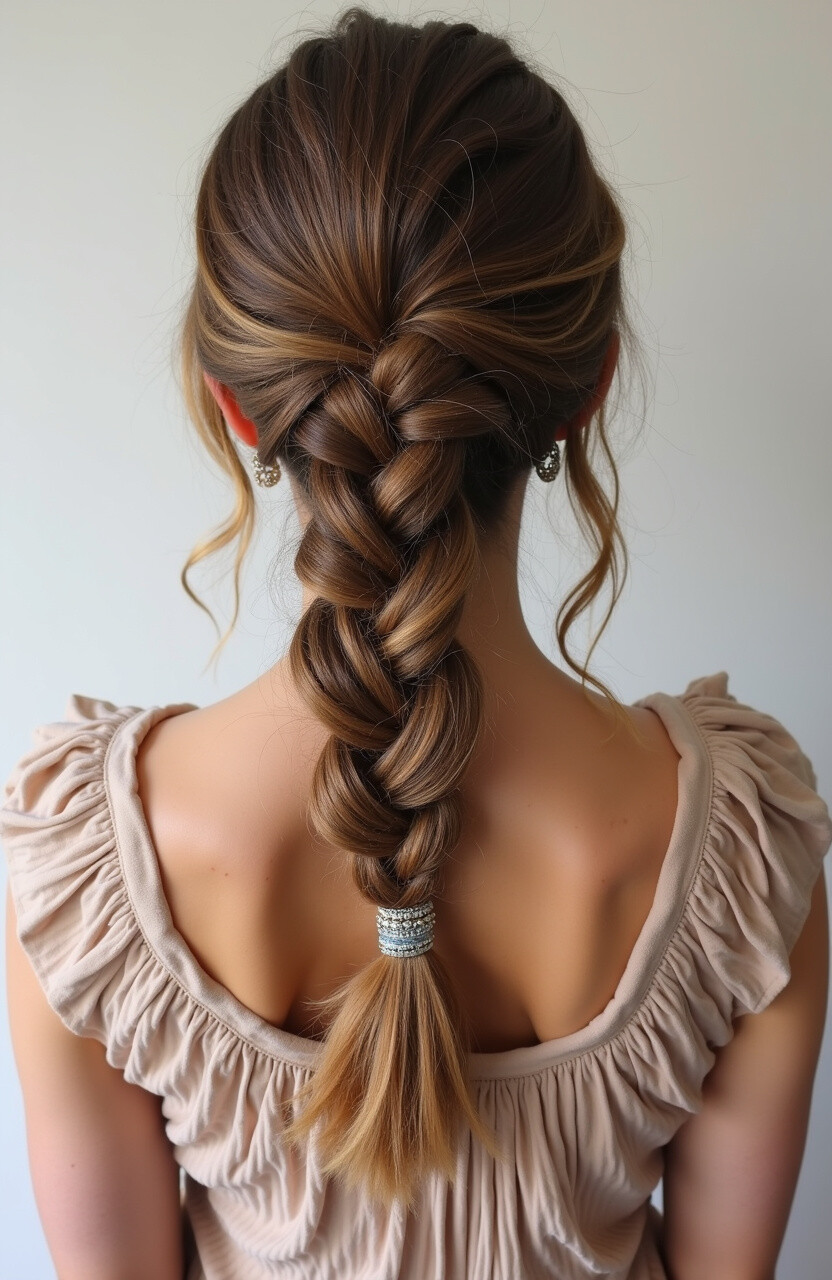 With a few strands left out to frame the face, it gives a soft, romantic look. Add some small flowers or beads for an extra boho touch. It’s a versatile choice that complements any outfit.
