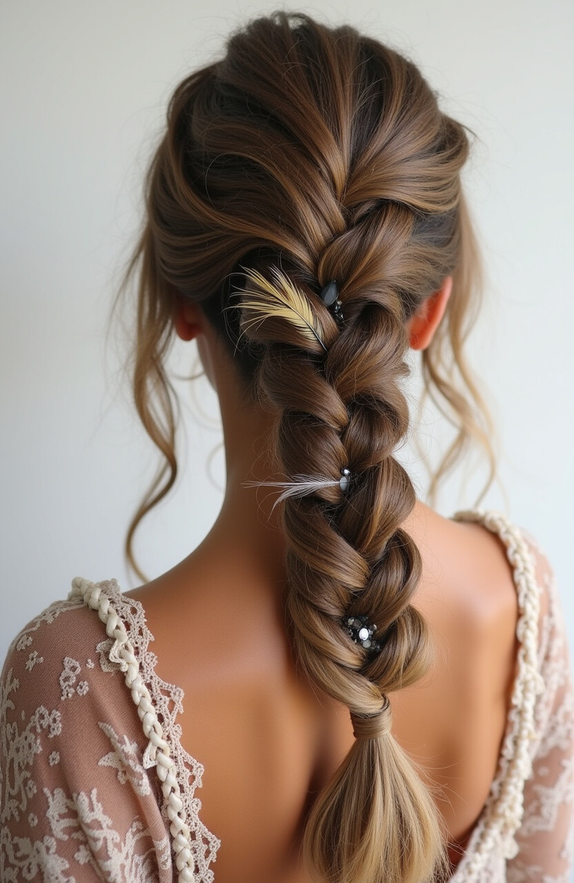 Keep the braid loose and relaxed for a carefree appearance. Add some feathers or small trinkets for added interest.