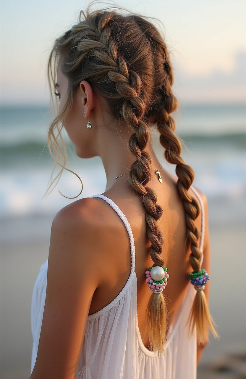 To add a boho twist, loosen the braids a bit and sprinkle in some colorful hair rings or threads. It’s all about expressing your individuality through your hair.