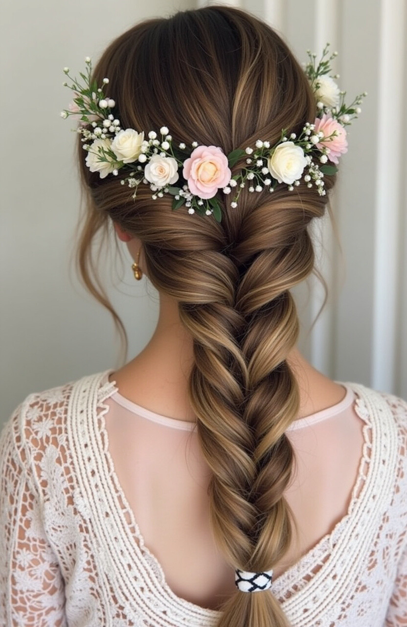 Adding floral clips or small blooms enhances the bohemian vibe, making it an ideal choice for spring and summer events. It’s like wearing a garden in your hair!