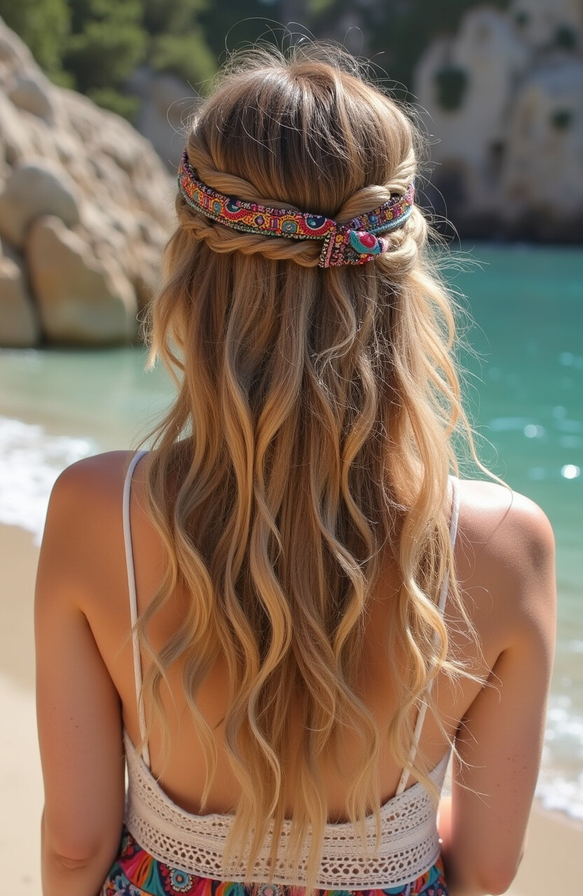 Accessorize your waves with a boho headband for a touch of bohemian flair. This style is easy to achieve and adds instant personality.