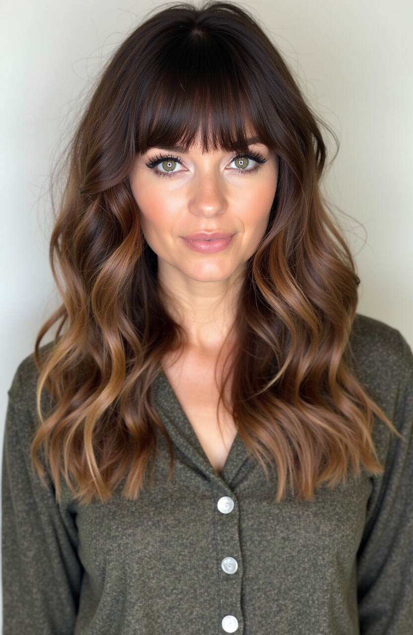 Pair your boho waves with bangs for a trendy, modern look. Bangs add an edge to the soft waves, creating a striking contrast.