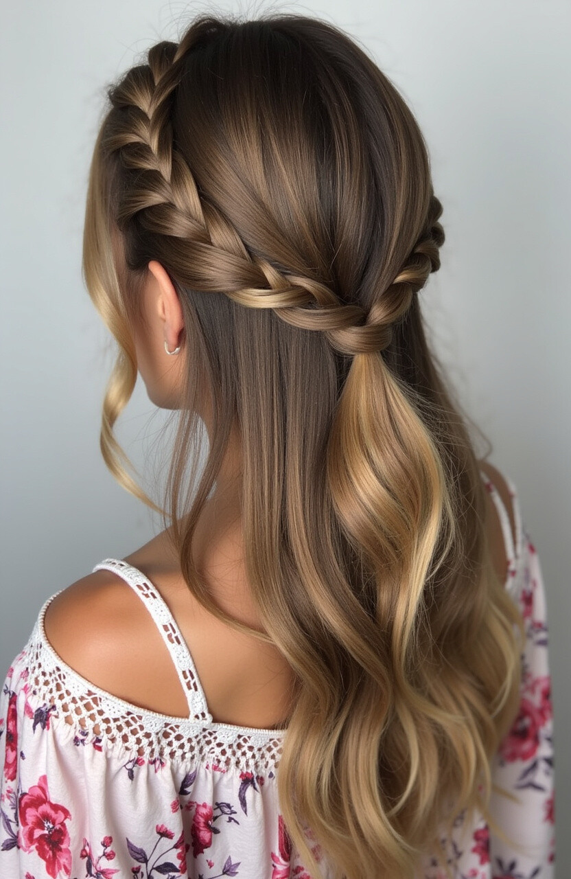 Braid a small section of your hair and let it blend into your waves for an enchanting look. It’s ideal for festivals or any bohemian-themed event.