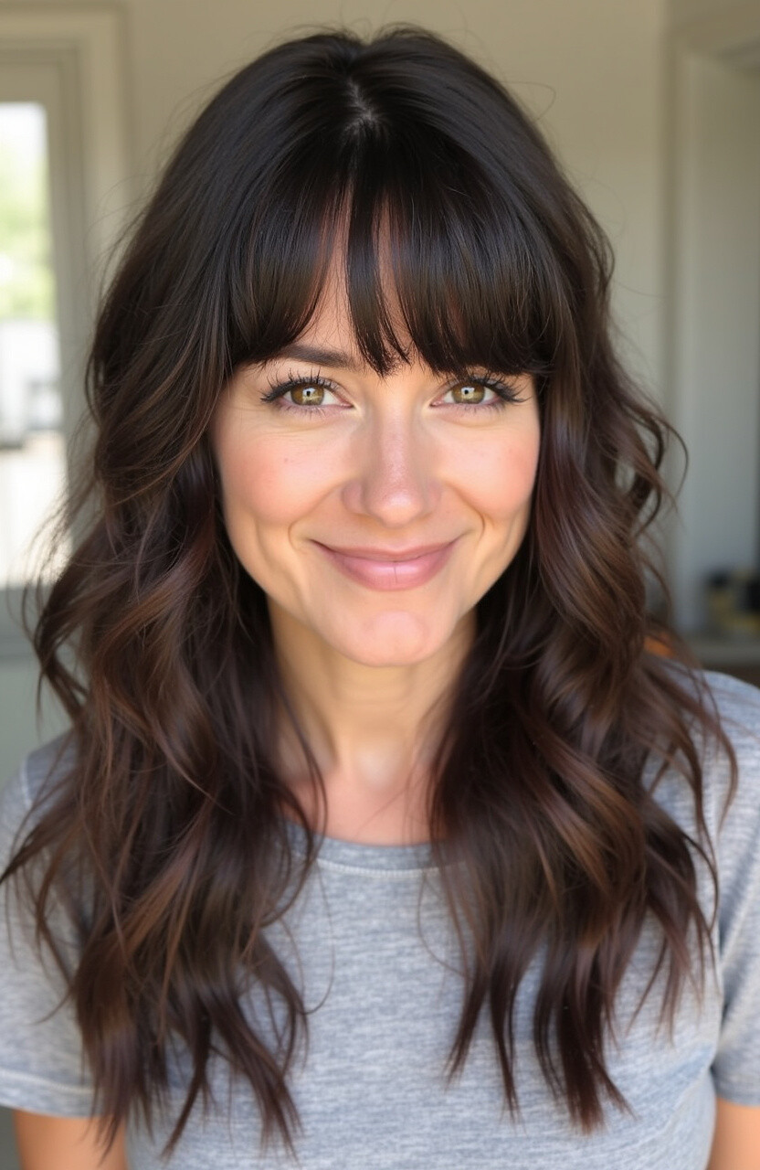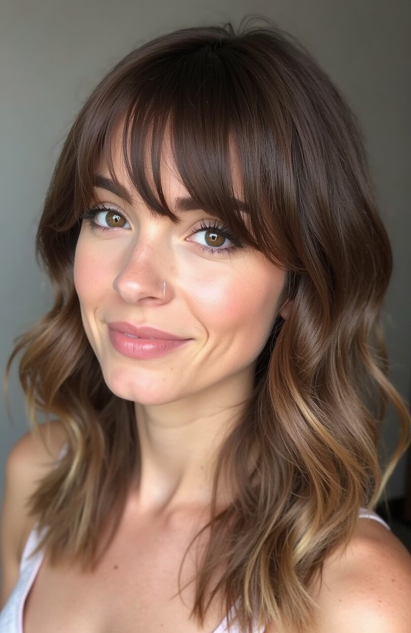 These bangs are perfect for adding volume and interest. They pair beautifully with layered cuts or beachy waves.