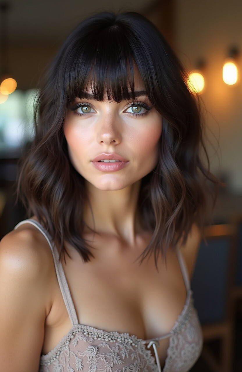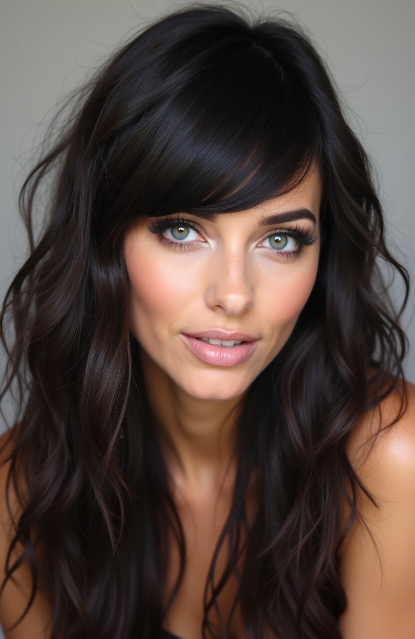 These bangs are ideal for a contemporary and trendy look. They draw attention and add a sense of mystery.