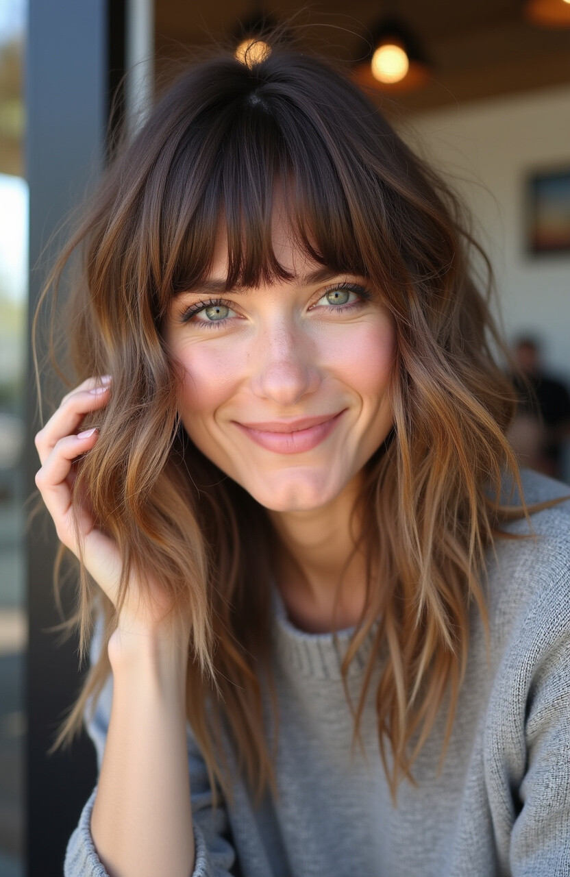 These bangs are perfect for adding volume and texture. They pair well with layered cuts or a messy bun.