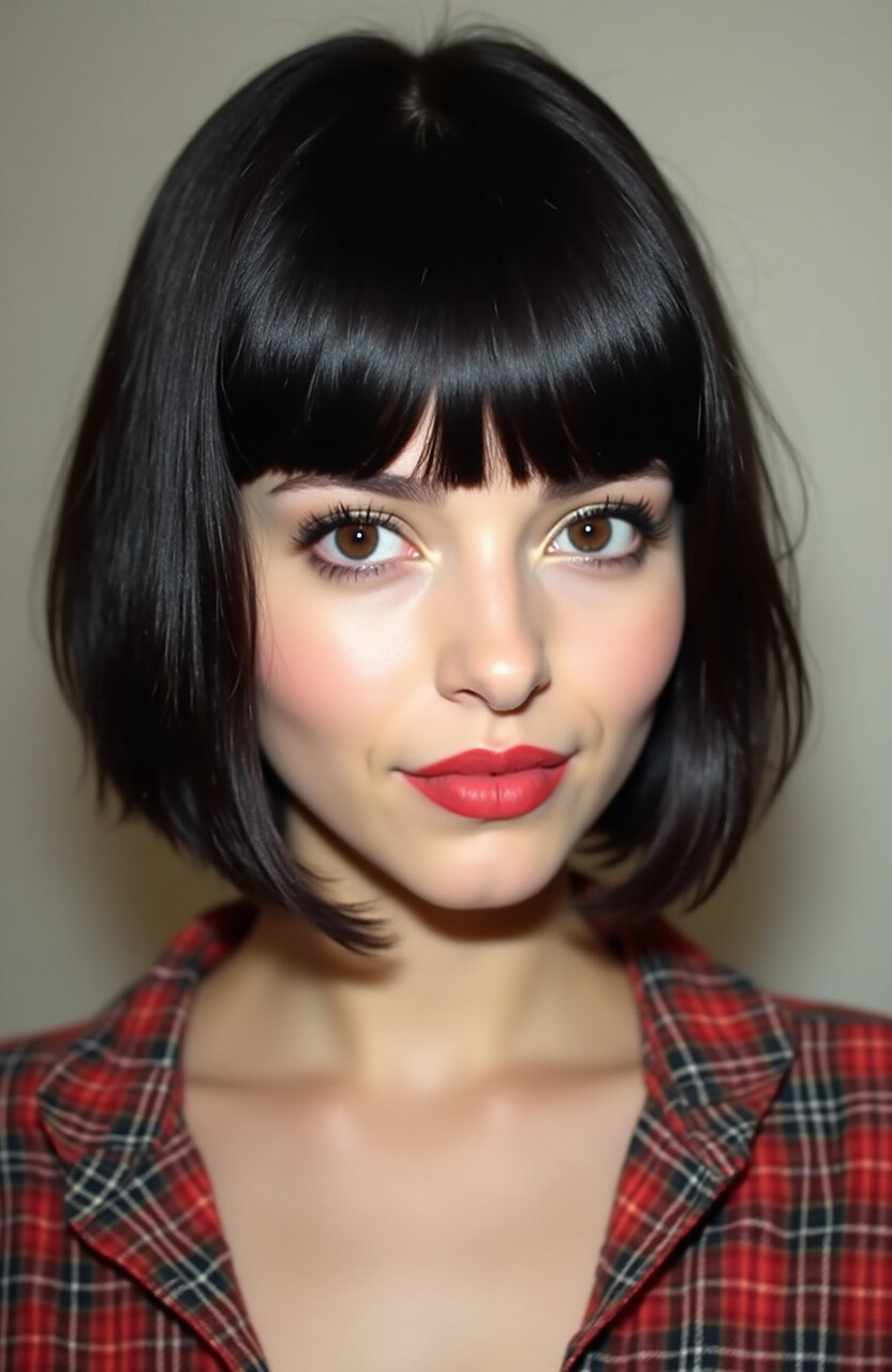 Blunt bangs make a bold statement. They fall straight across your forehead, giving your look a sharp edge. If you want your eyes to pop, these are the bangs for you.