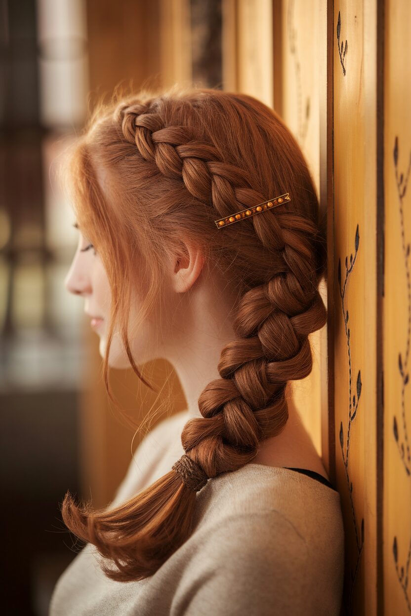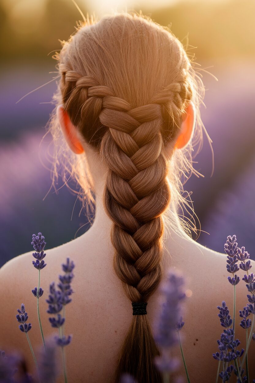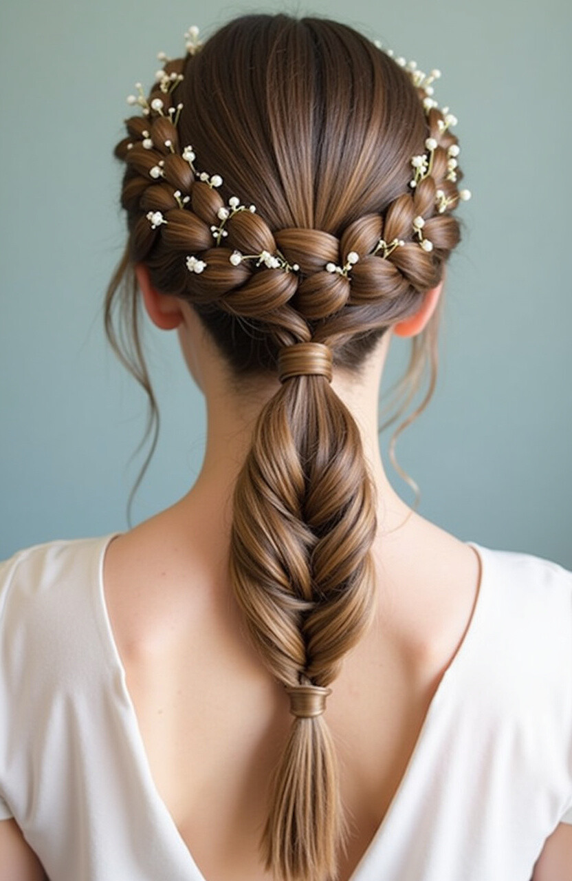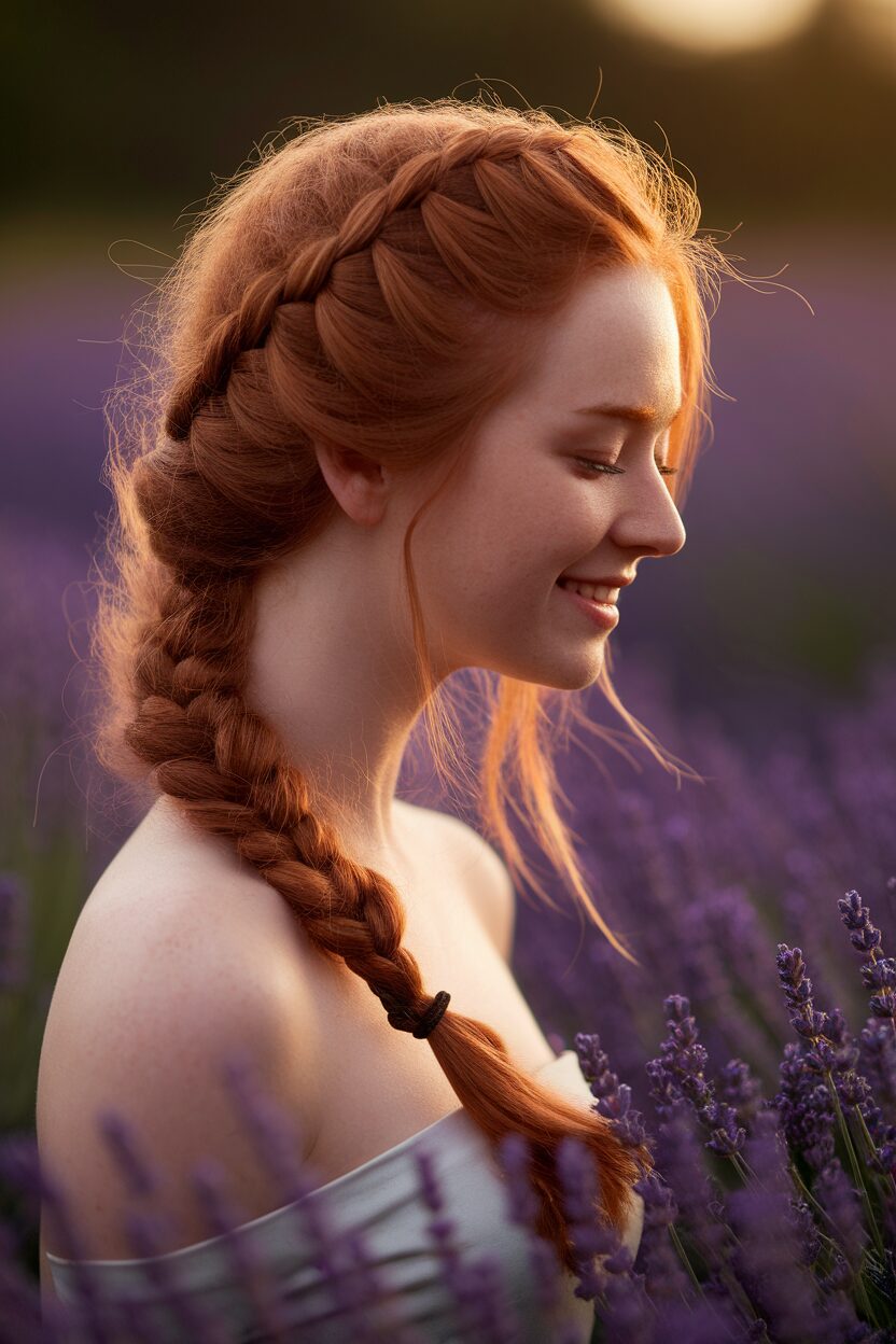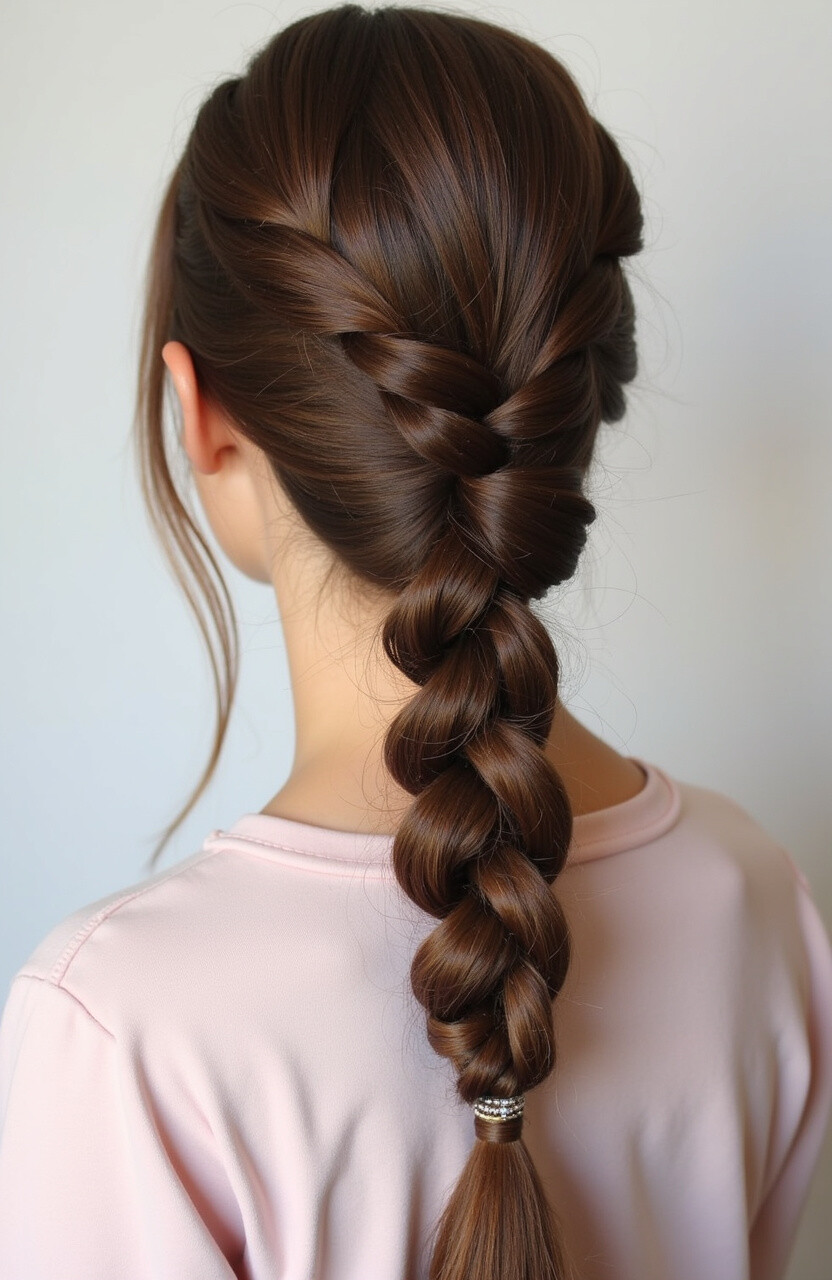 It’s perfect for anyone looking to make a statement. The braid leads into a ponytail, offering a balance of structure and flow. To add a personal touch, incorporate small flowers or beads into the braid.
