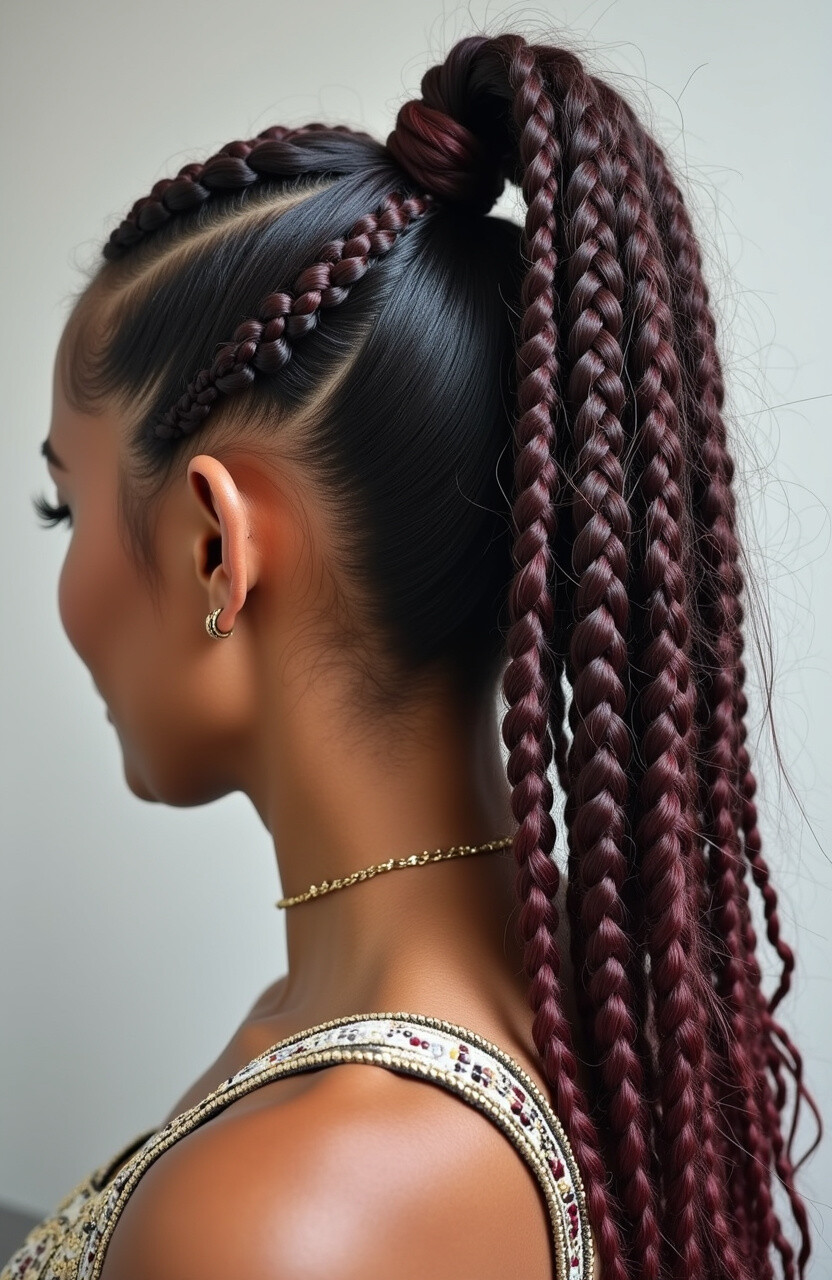This hairstyle is a celebration of culture and style. Box braids are versatile and can be styled into a high or low ponytail, offering both comfort and elegance.