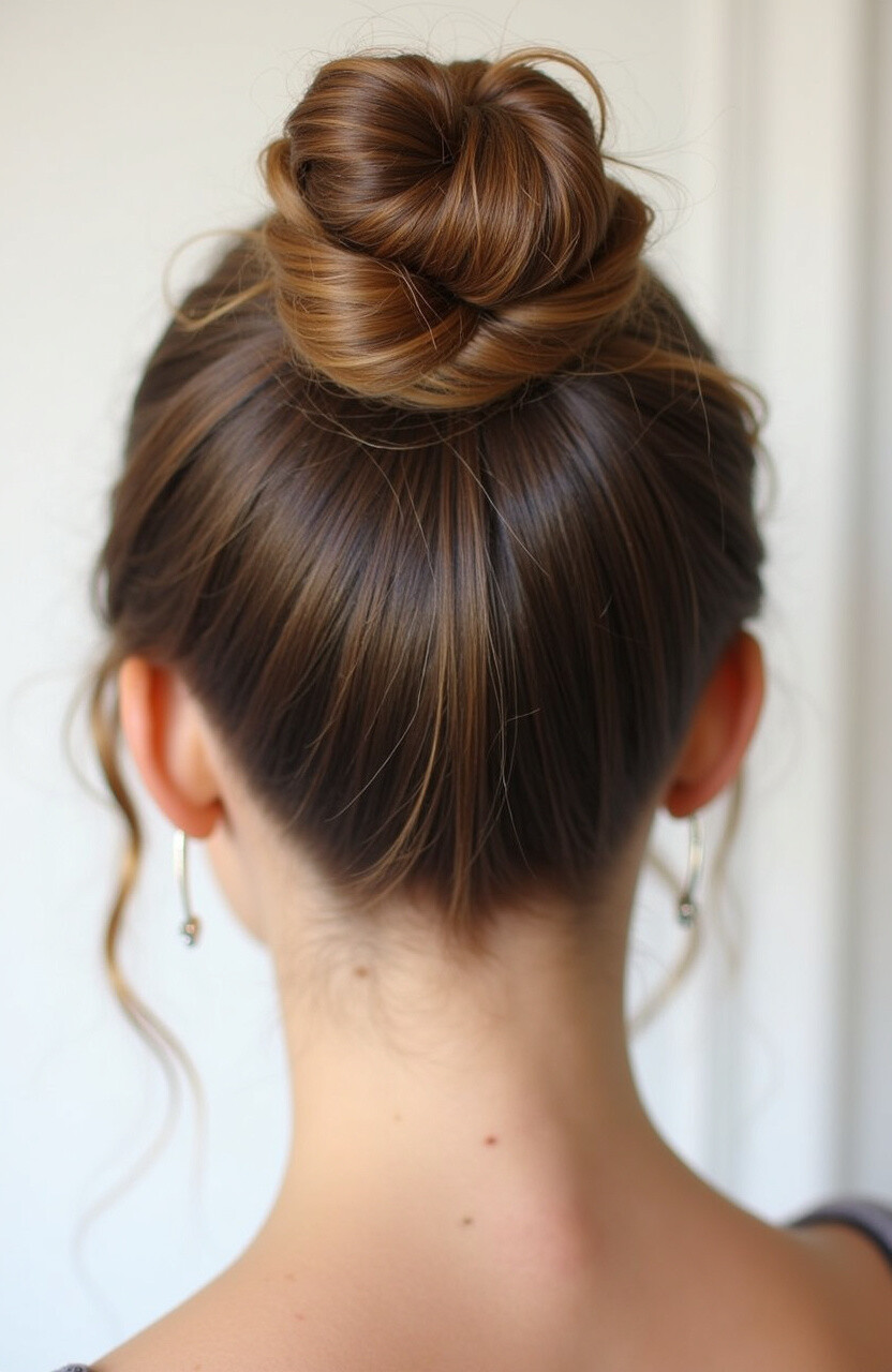 This style stands out for its neatness and the volume it creates. It’s perfect for formal events or whenever you want a tidy, elegant look. The sock bun gives you a full and voluminous appearance.