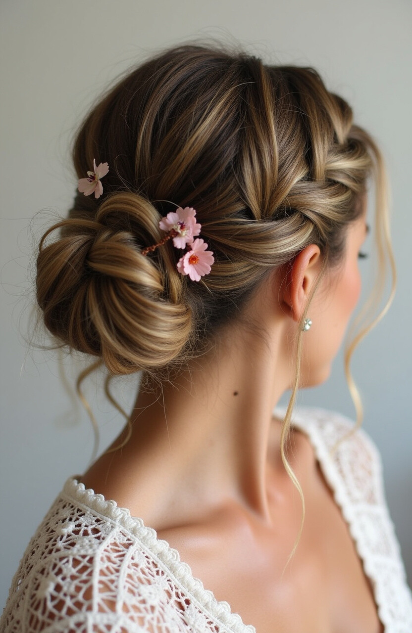 The twisted updo is perfect for those who want a romantic and soft appearance. It offers a unique texture and depth, giving your hair a fuller look. This style is ideal for weddings and formal gatherings.
