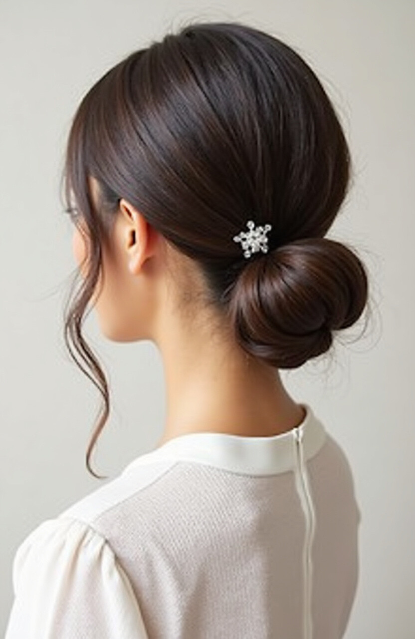 Add a jeweled hairpin for a touch of glamour. Despite its sophisticated look, this style is quite affordable and requires minimal tools.
