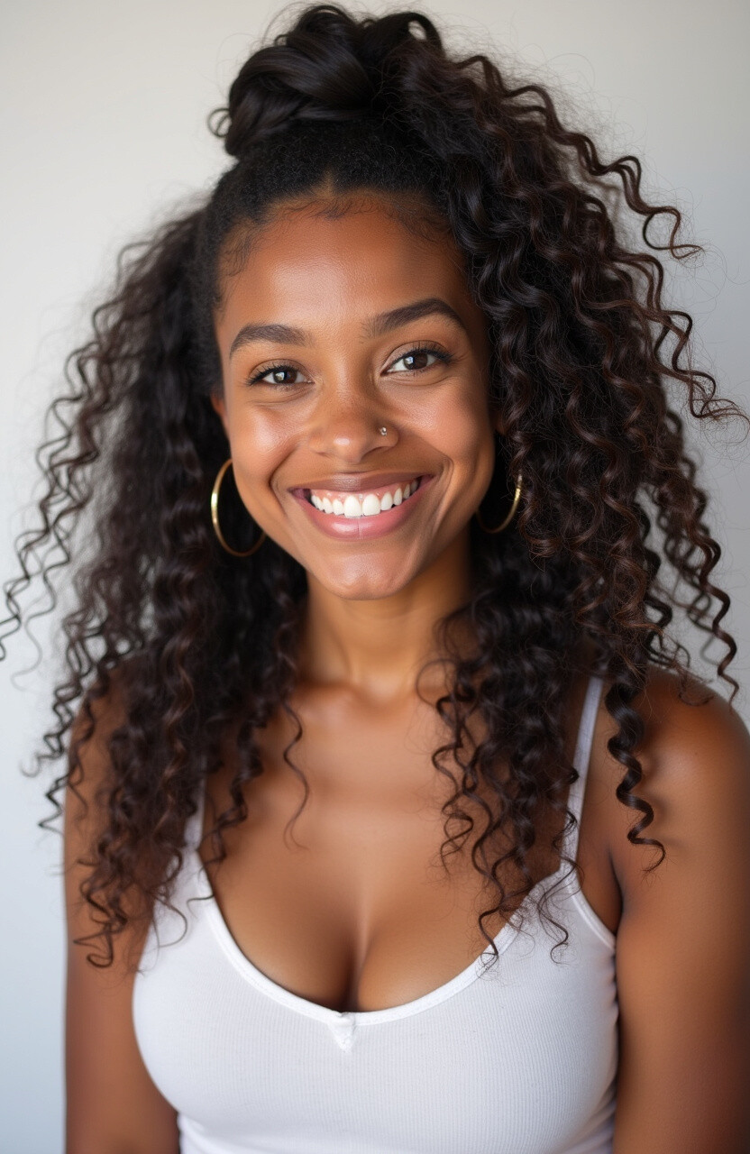 The Half-Up Half-Down style is versatile and fun. It combines the best of both worlds, showcasing your curls while keeping hair off your face.