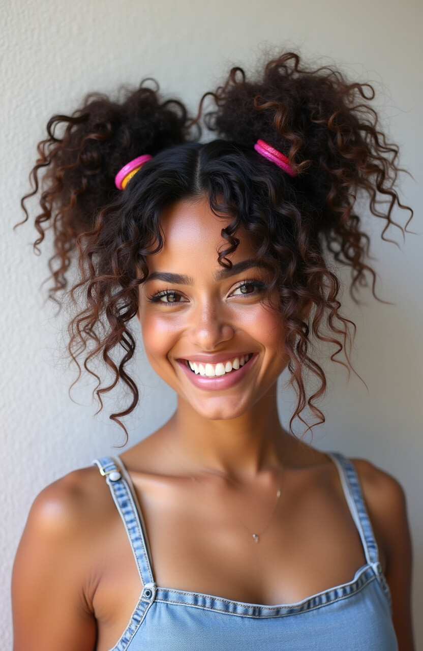 It’s a great way to keep your curls in place while still looking cute. Use colorful hair ties or clips for a pop of color. Space buns are all about fun and creativity.
