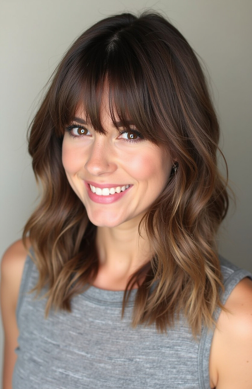 If you love the beachy wave look, wavy curtain bangs are your go-to. Adding waves to your curtain bangs gives them a casual, breezy feel that’s perfect for any season. The waves add volume and texture, making your hair look fuller and more dynamic.