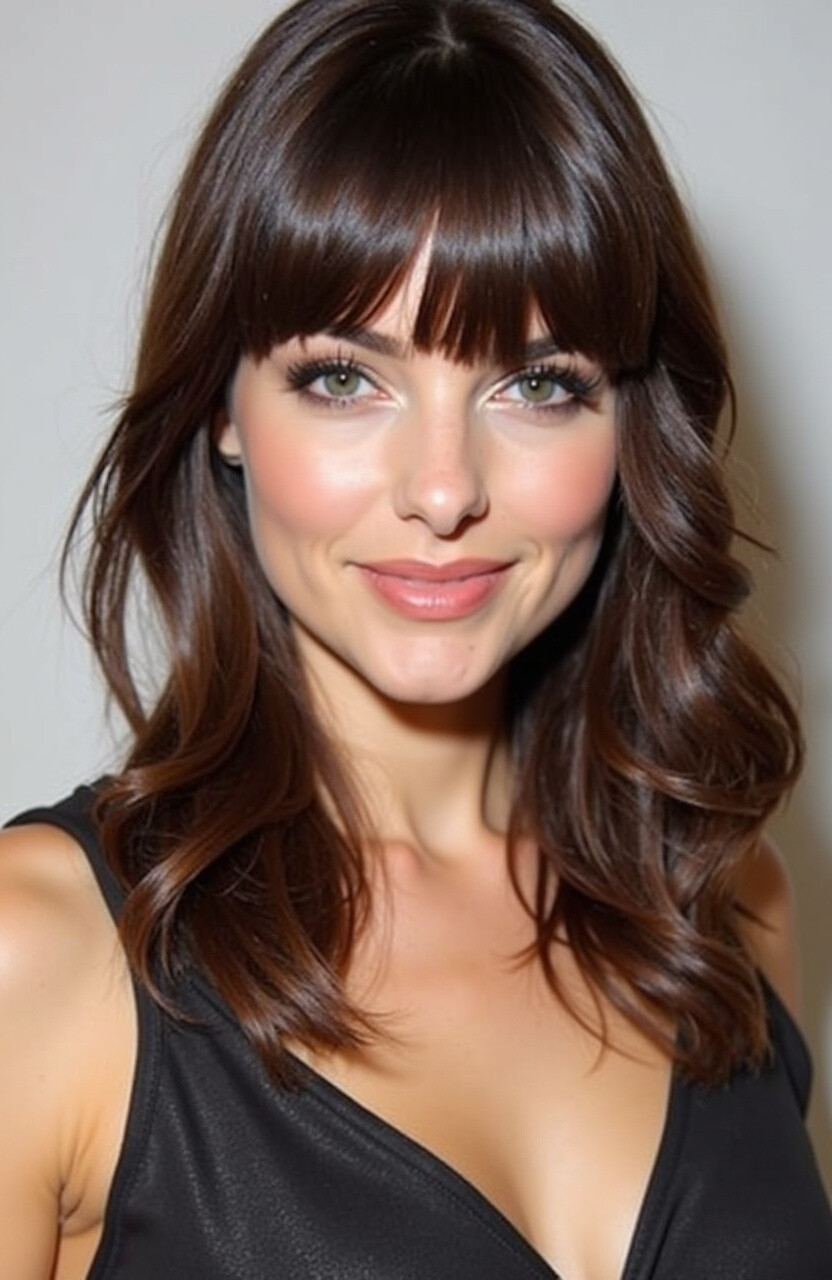 The classic curtain bangs are a timeless choice that frames your face beautifully. They gently sweep across the forehead, offering a soft and feminine touch. Perfect for all hair types, this style is a great way to ease into bangs without a full commitment.
